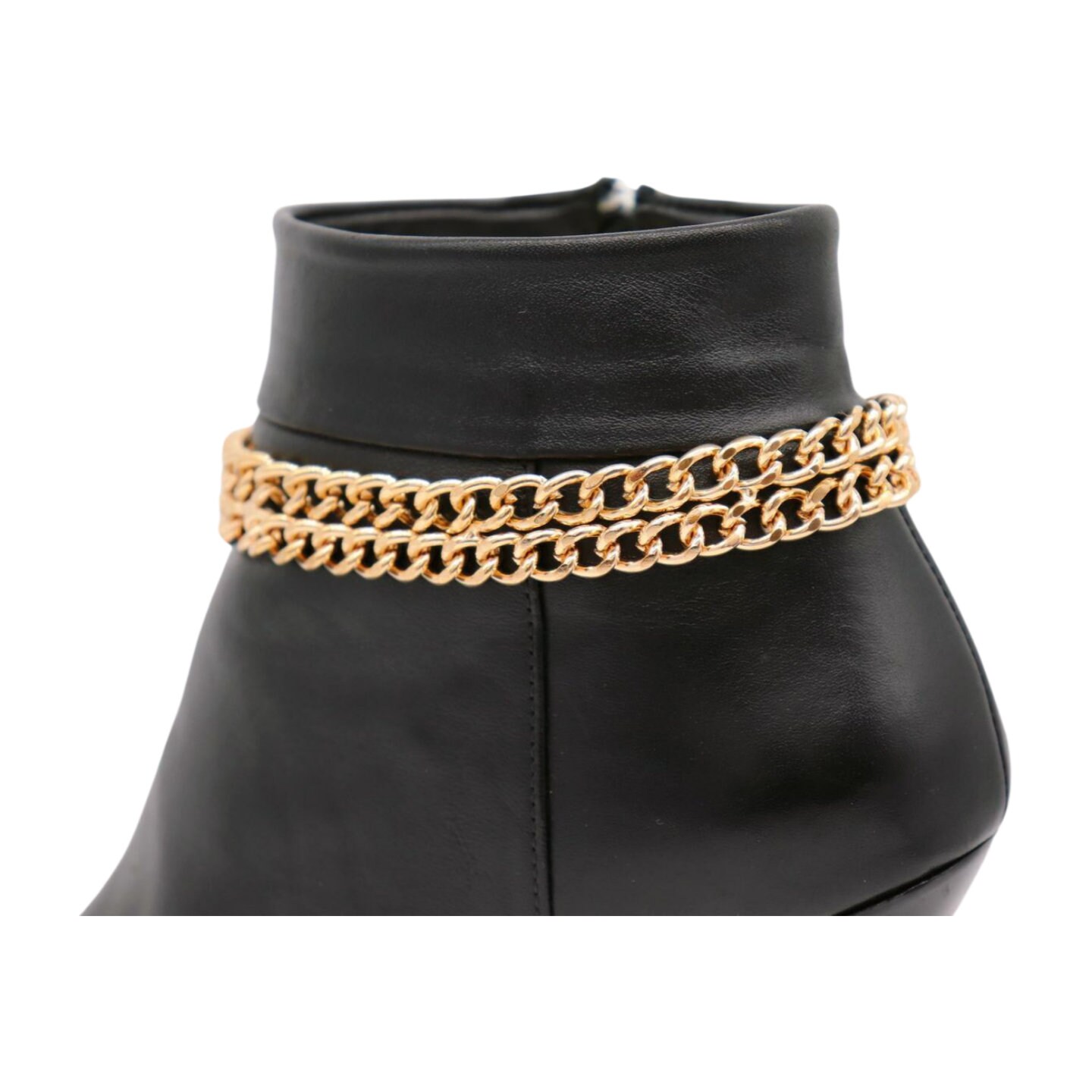 Gold Double Chain Boot Jewelry Pair, Women’s Boot Chain Bracelets SET (BC97)
