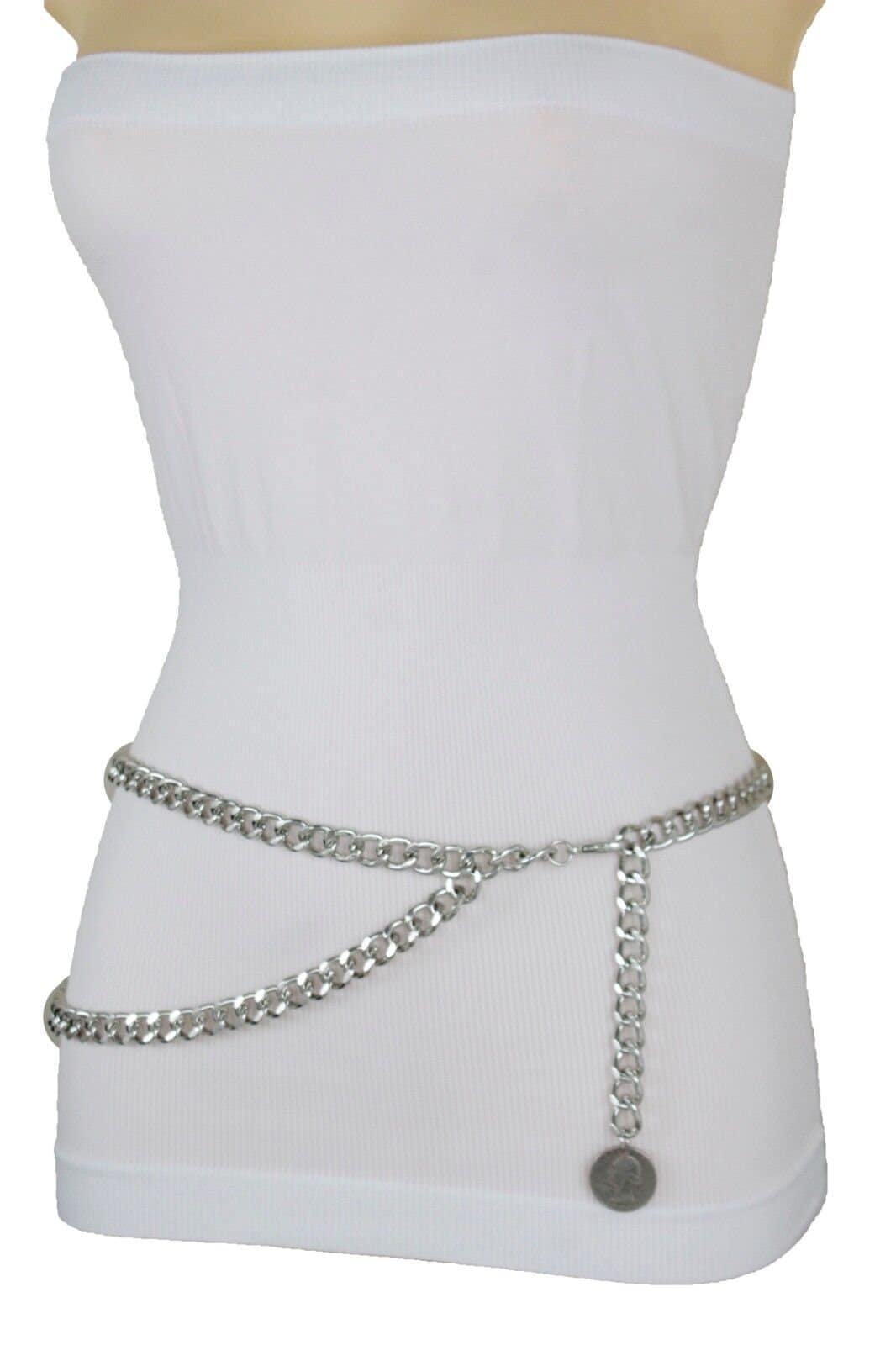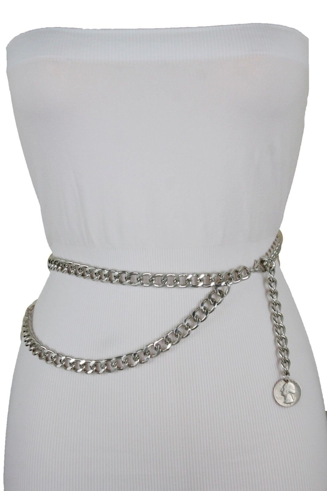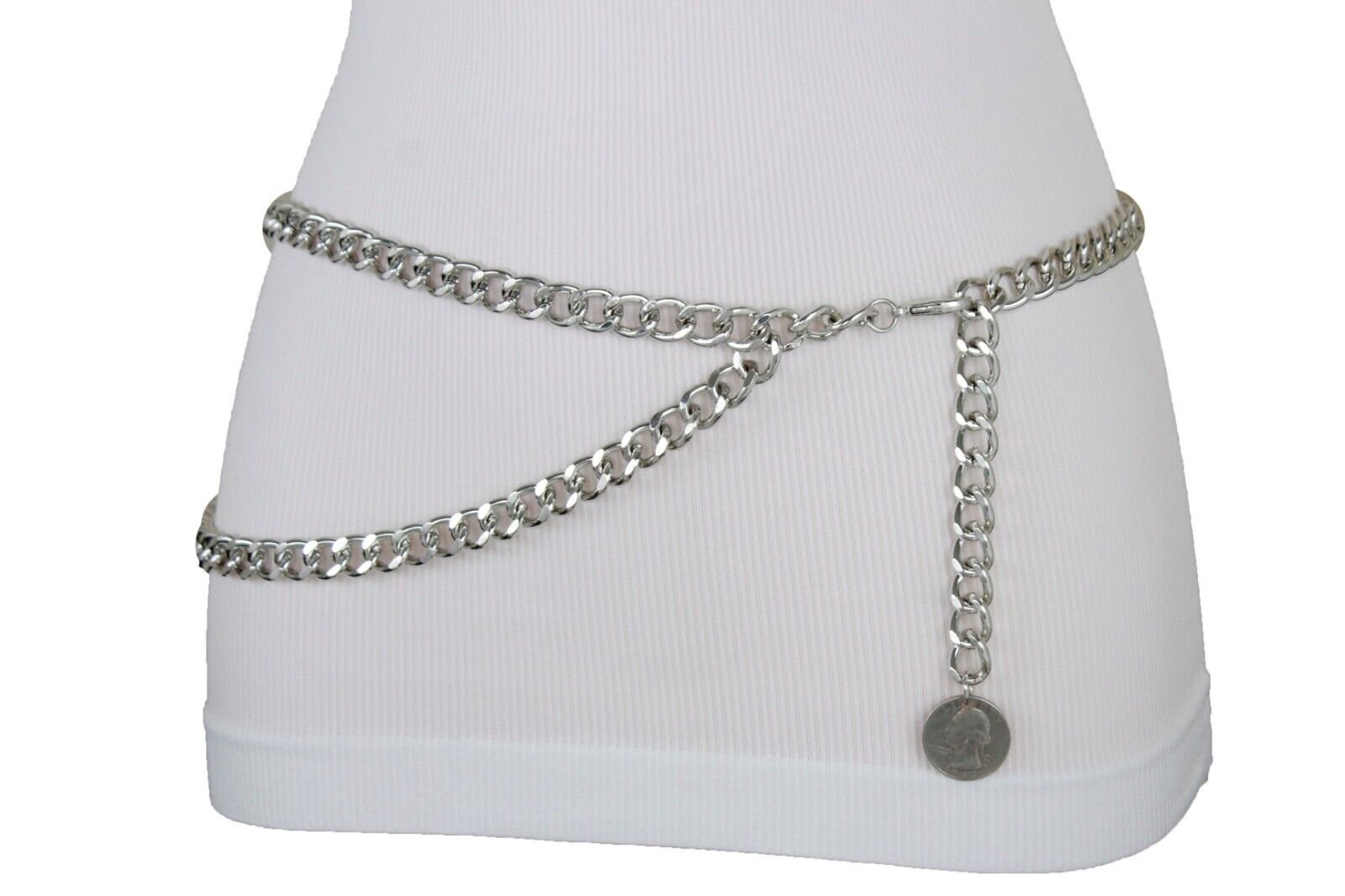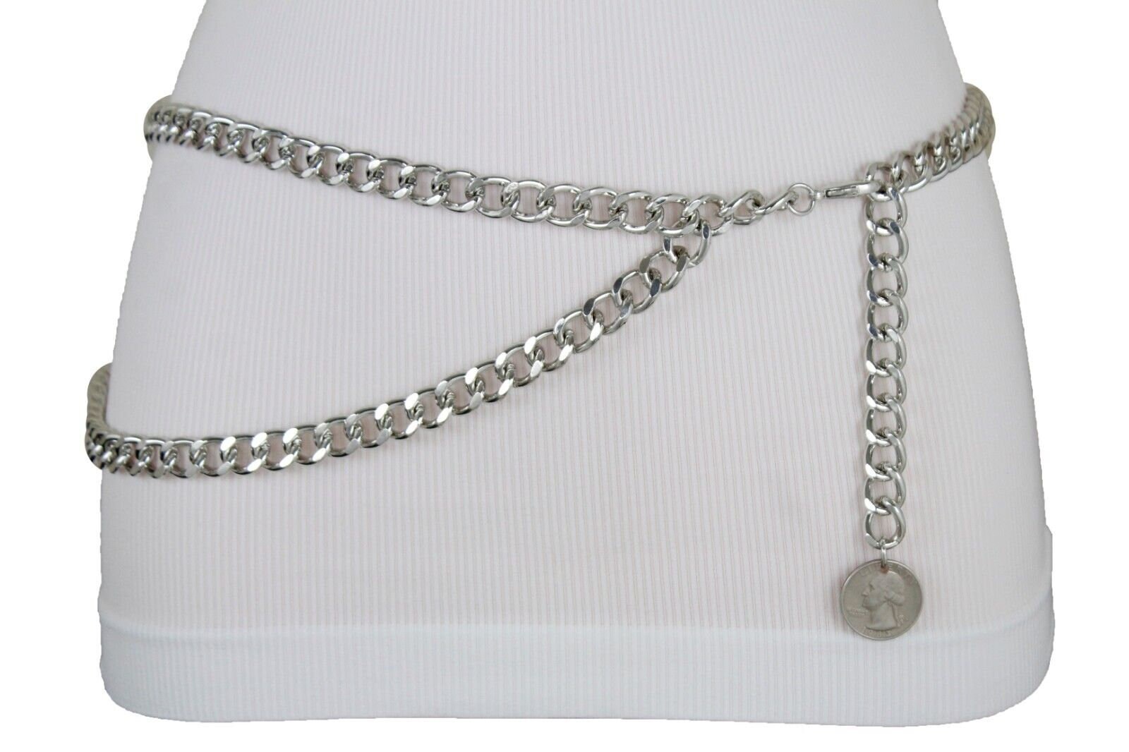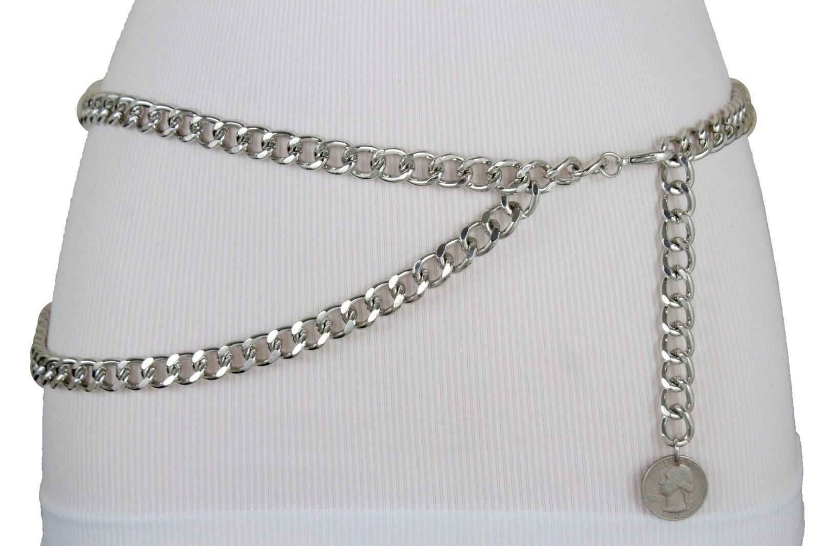 Color : Silver Metal Chain Links Waistband And A Quarter (Real American Quarter Money Coin - Each Coin May Be A Bit Different) Charm Buckle