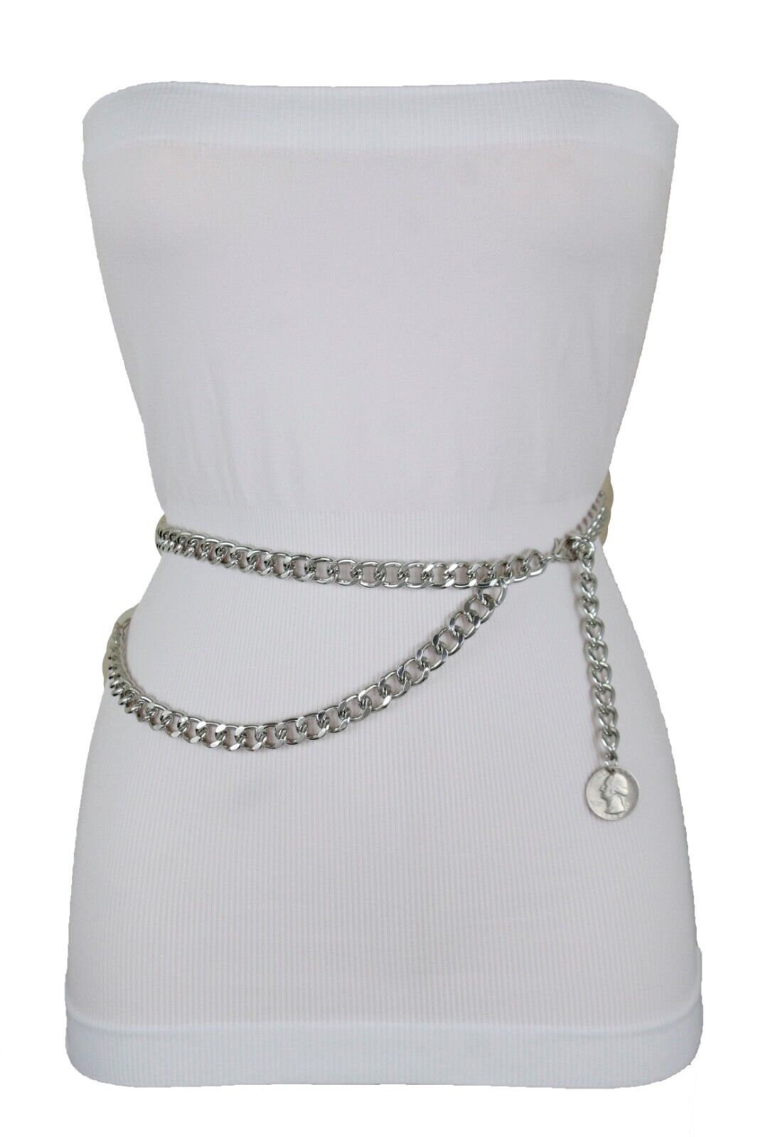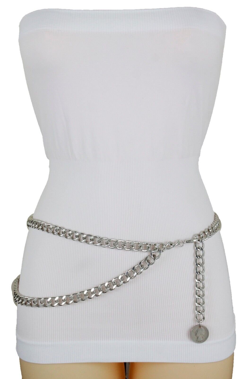 Command Attention with the Unique Silver Metal Chain Links Waistband Belt!