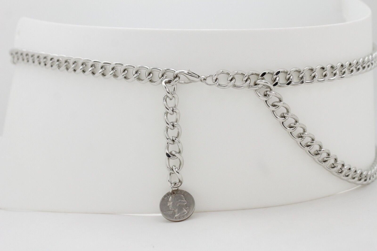 Elevate your fashion game with the Unique Silver Metal Chain Links Waistband Belt featuring a Real American Quarter Charm. Make a statement, spark conversations, and let your style shine with this exceptional and fashionable accessory. It's more than a belt; it's an expression of your individuality!
