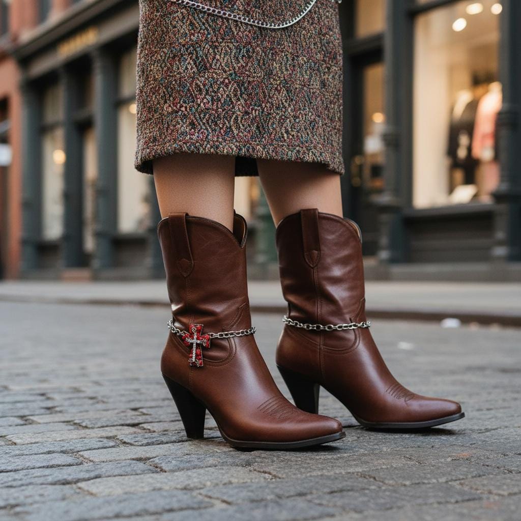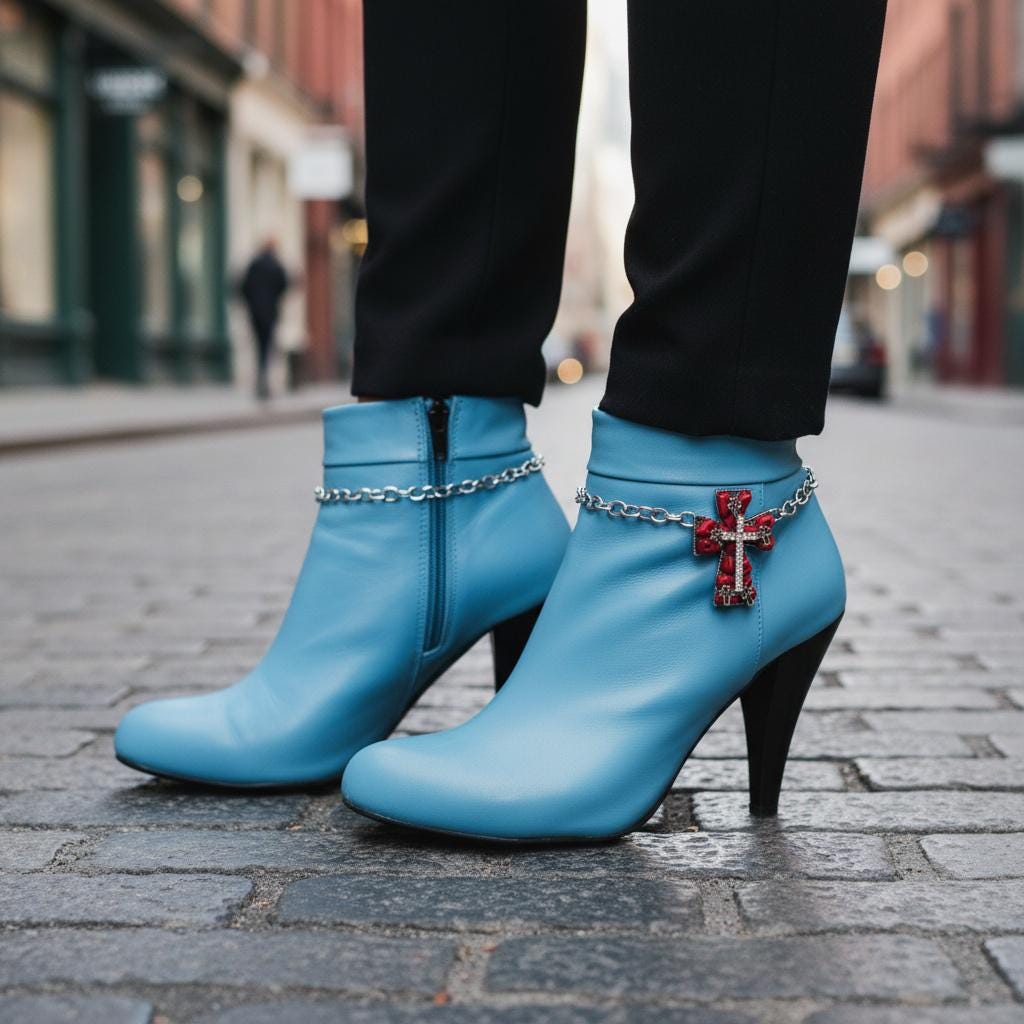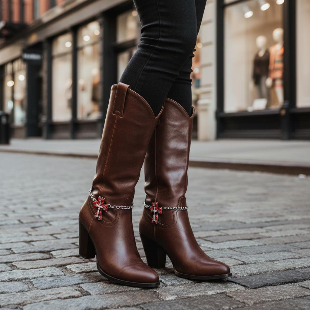 Meet the accessory that makes boots look “styled” in about five seconds. This listing is for a pair (2pcs) of silver-tone boot chain anklets featuring a bold red cross charm with sparkle accents. The chain wraps around the ankle area of your boot, adding shine, movement, and that satisfying little detail people notice when you walk by.