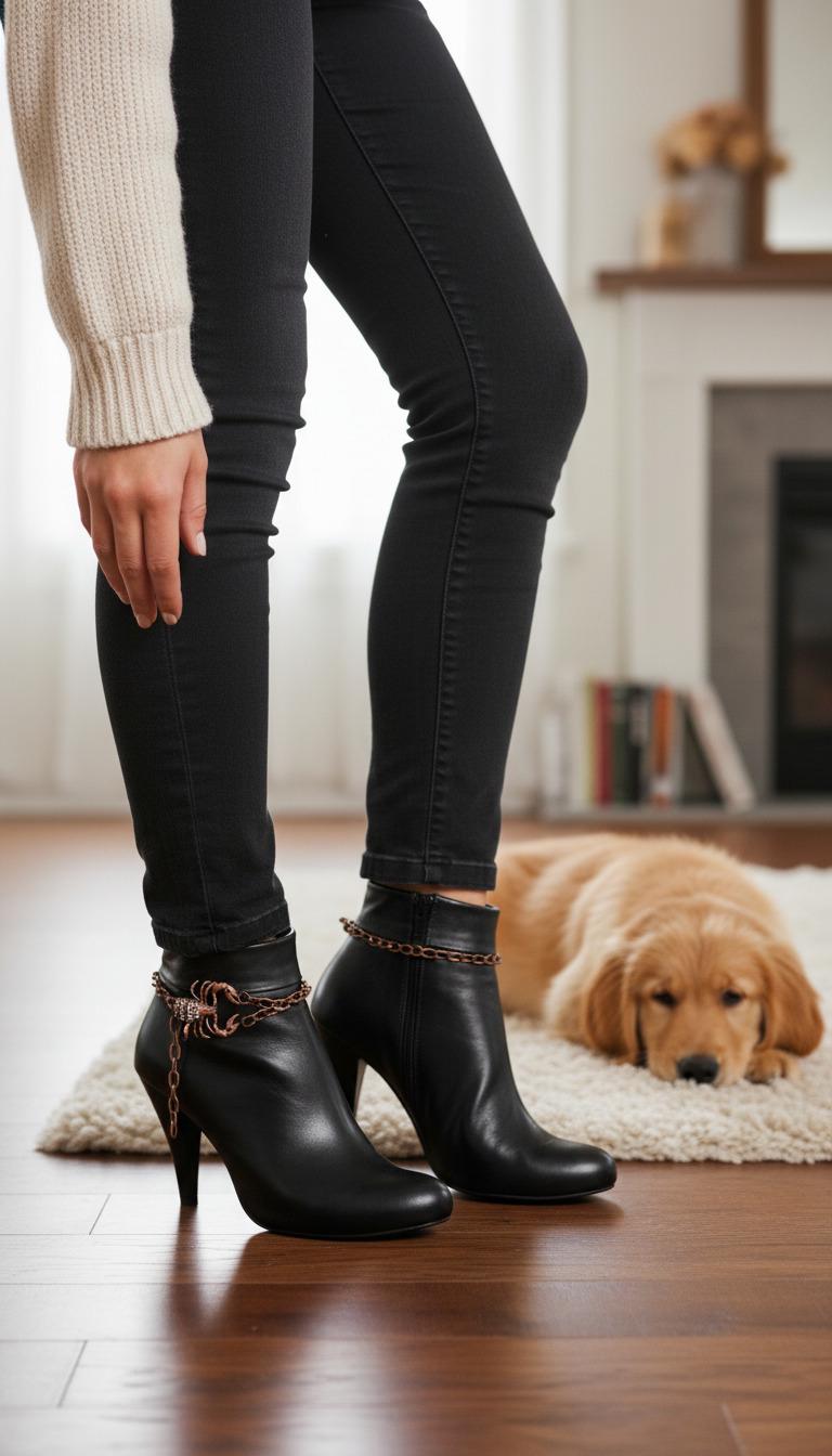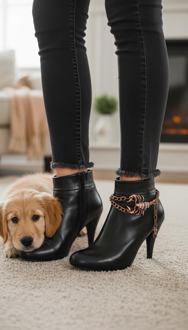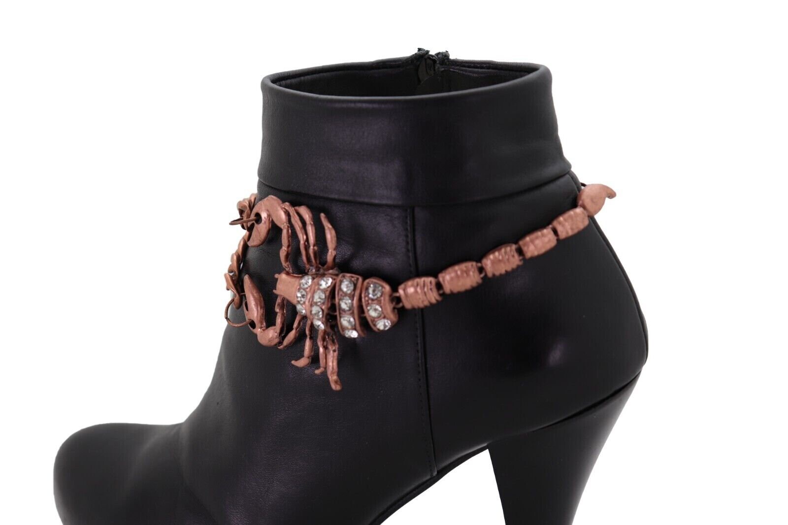 This pair of copper-brown boot chain anklets features a bold scorpion charm with rhinestone sparkle and a draped chain detail that instantly upgrades boots, booties, and ankle boots. Clip them on, let them drape, and suddenly your “simple outfit” looks like a styled look.