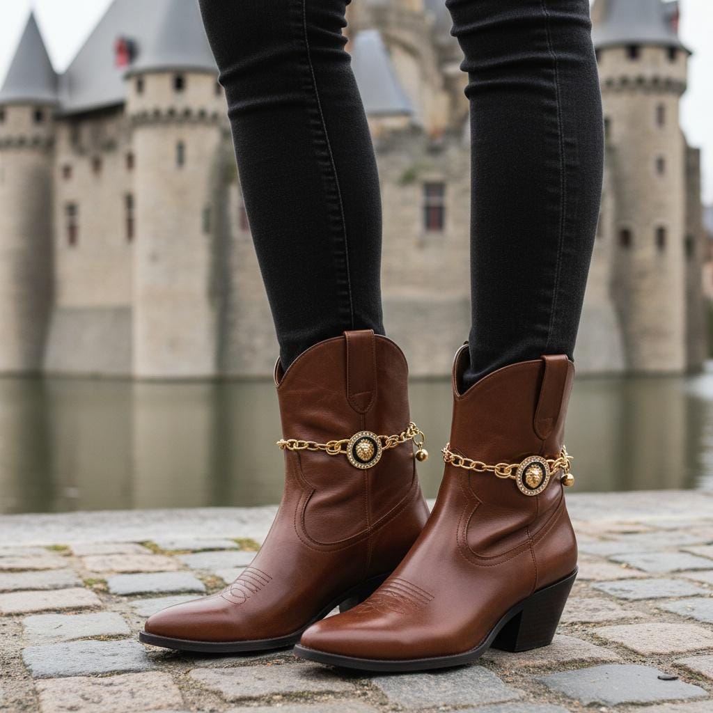 Meet BC176: a bold, polished boot jewelry set designed to upgrade boots, booties, and heels with a clean gold-tone chain and a standout lion medallion centerpiece. The coin-style charm is framed with a rhinestone halo for a crisp sparkle that shows up beautifully in photos while staying easy to style for day or night.