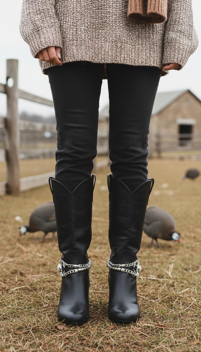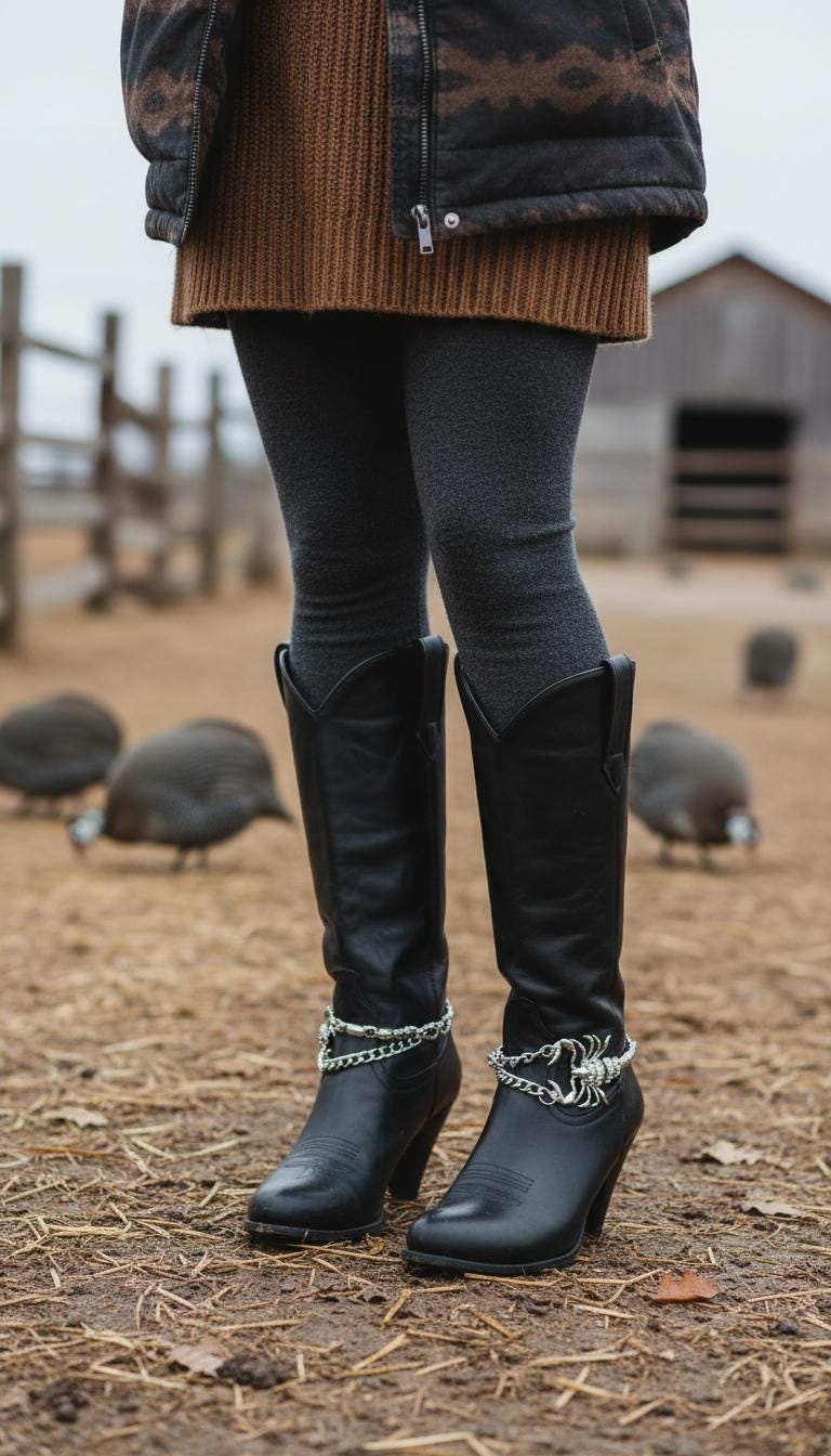 Classic cowgirl boots and skinny jeans for rodeos and country concerts
