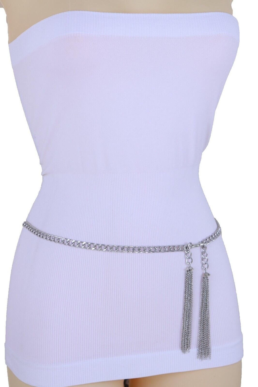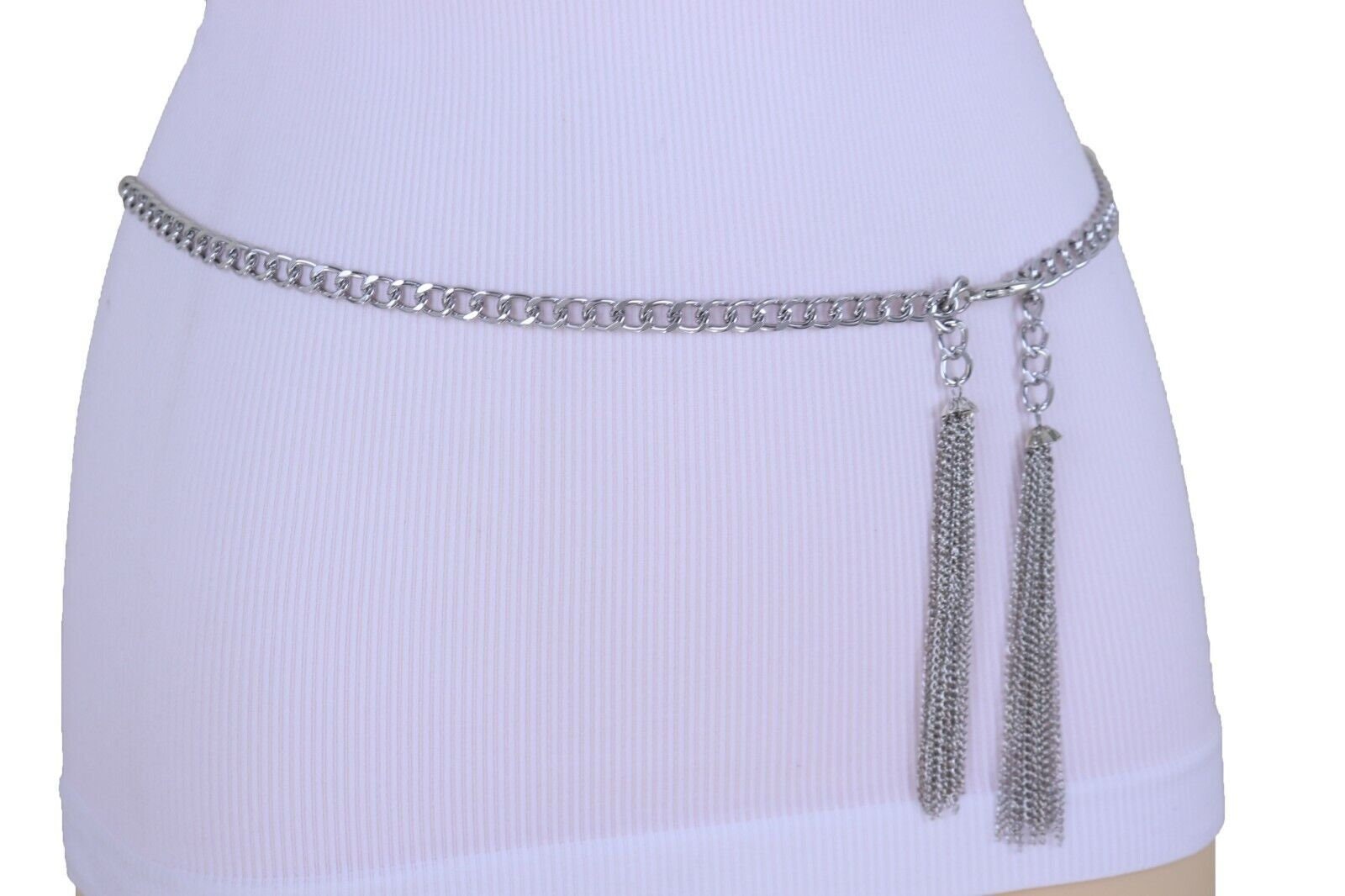 Silver Metal Chain Belt: Women's Tassel Waist or Hip Belt (XS-XL)