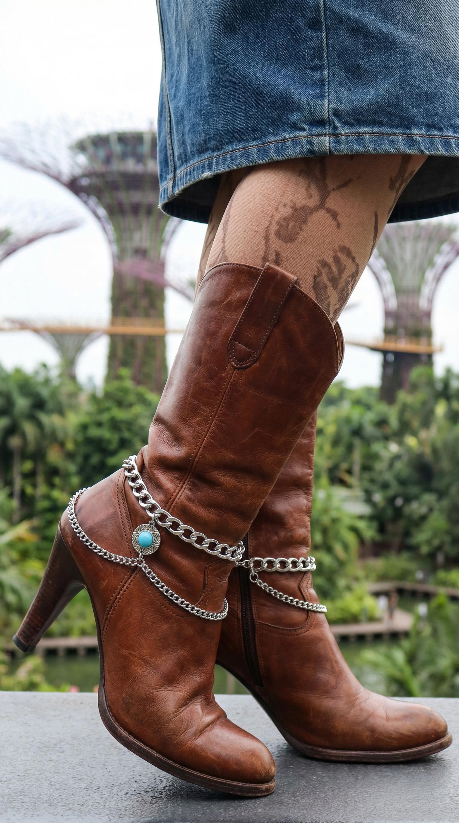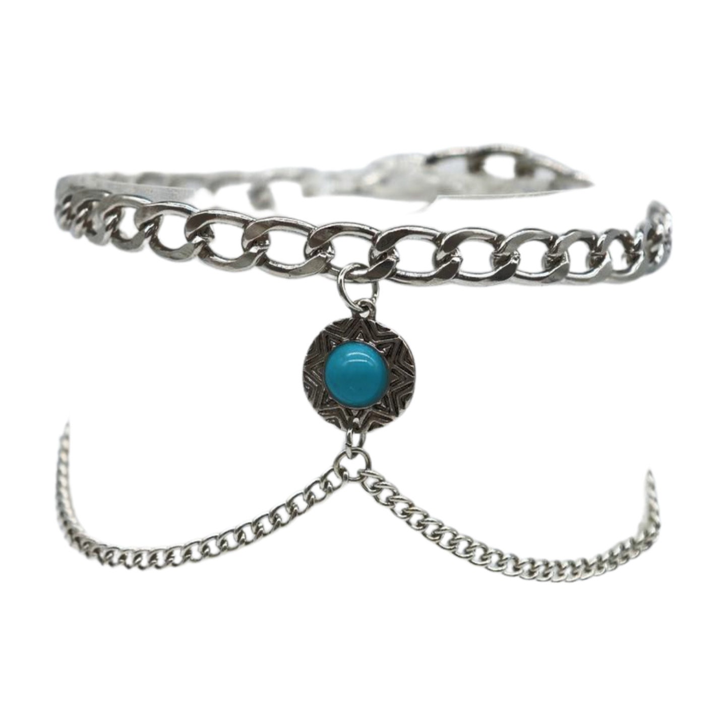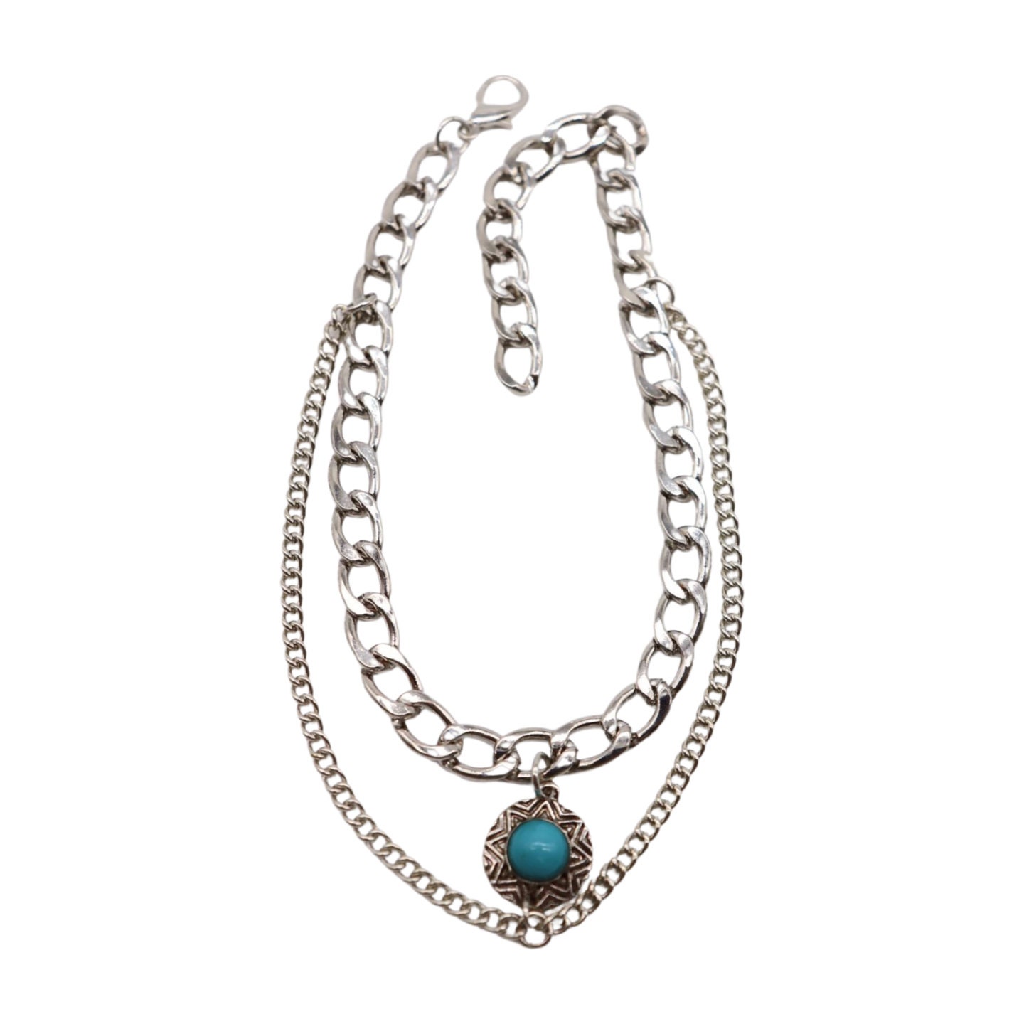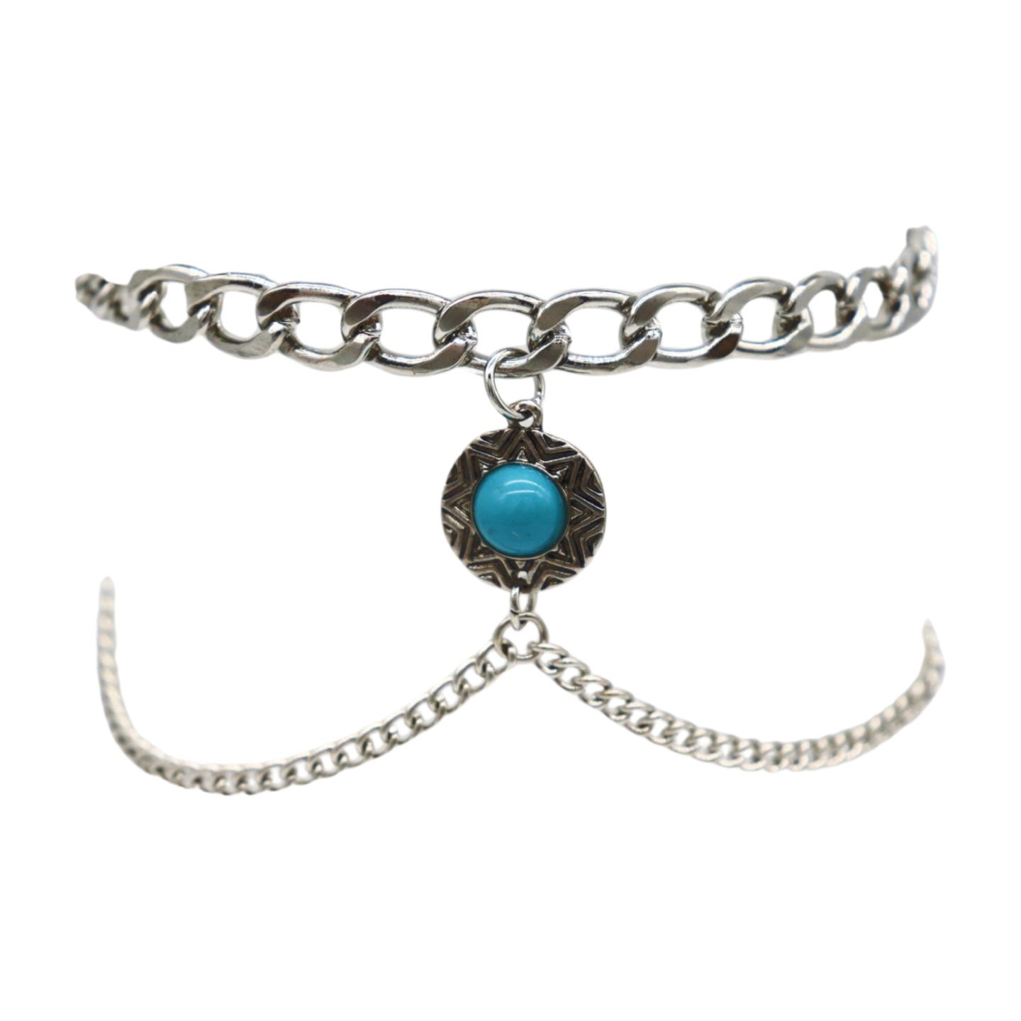 Style is in the details. This handmade pair of boot chain anklets adds an editorial finish with layered silver-tone chains and a turquoise coin charm that brings contrast and movement. Sold as a pair so both boots look balanced. Adjustable length lets you style with a gentle drape for comfort and a natural hang—perfect for photos, events, and standout outfits.
