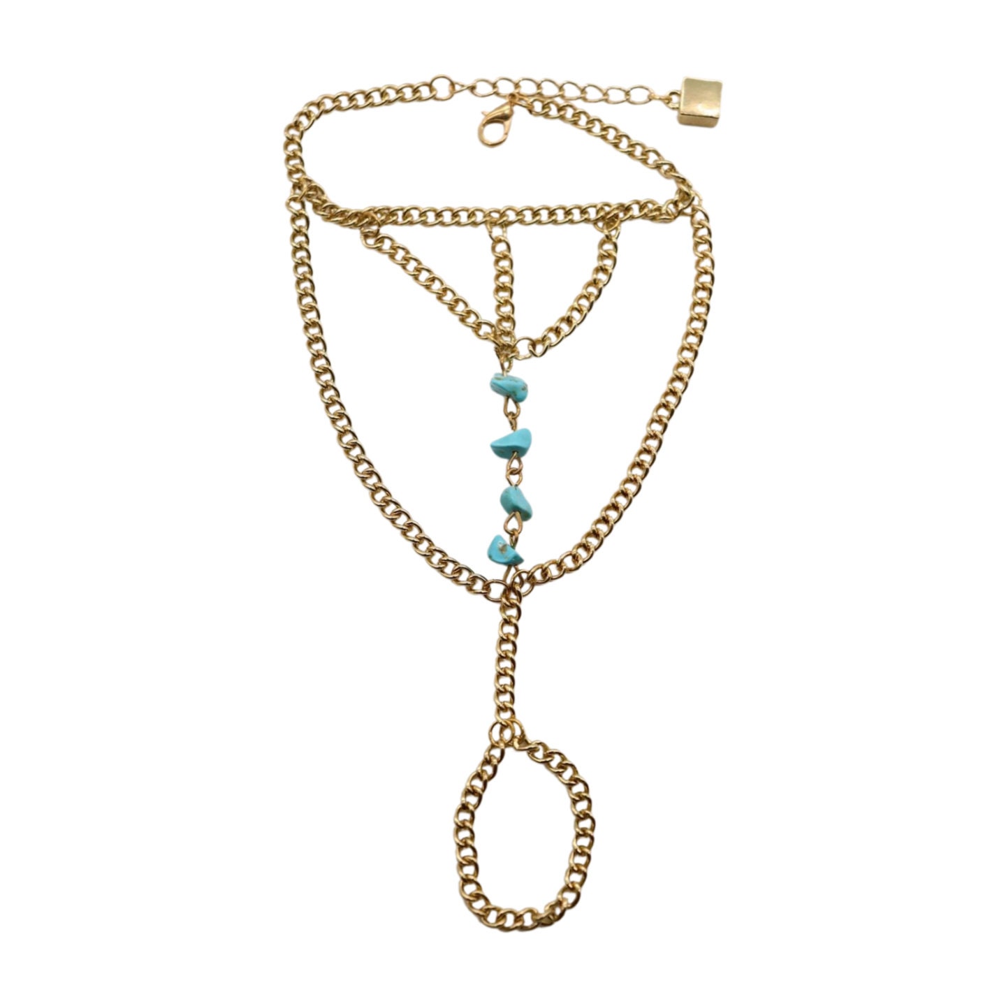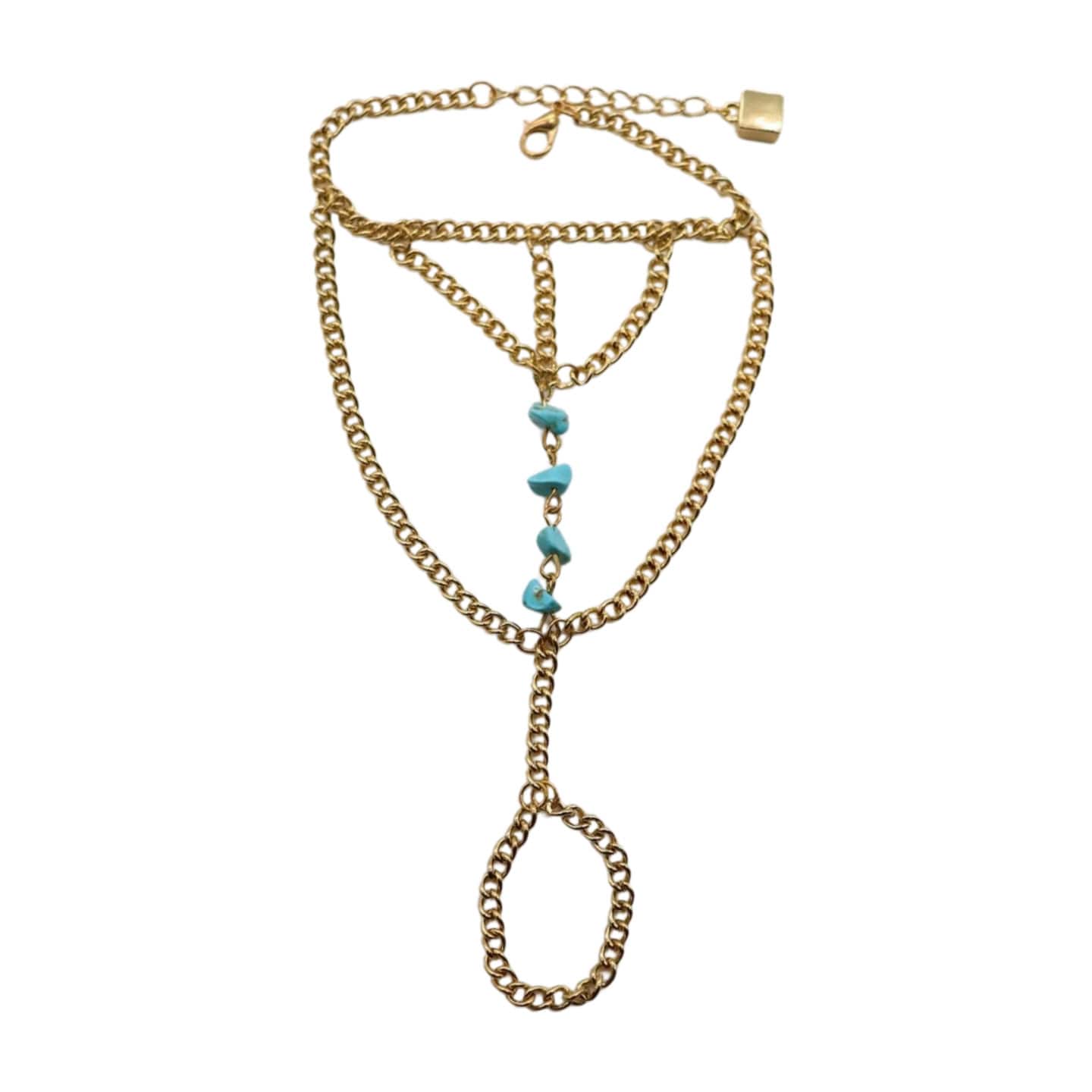 Gold Hand Chain Bracelet with Turquoise Beads: Southwestern Fashion