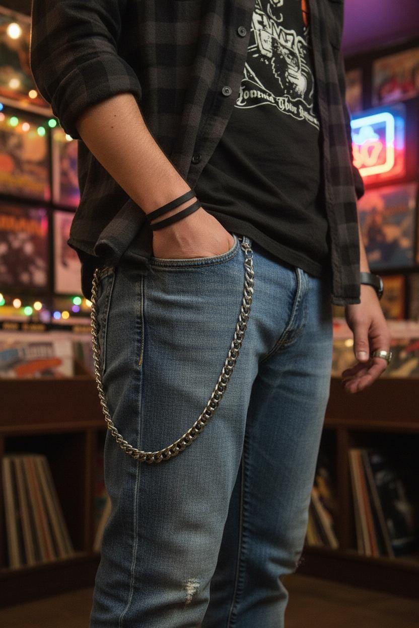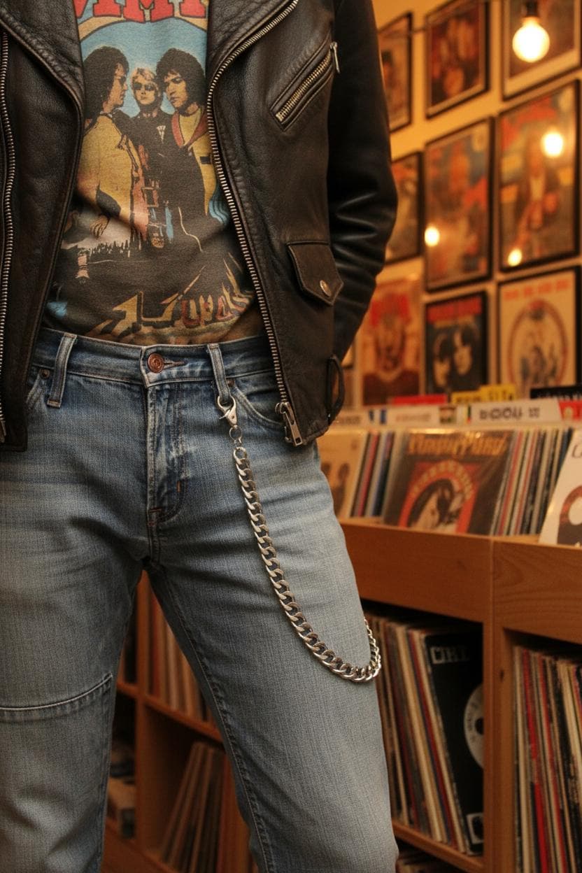 Casual Cool: Add a touch of edge to your everyday ensemble by styling this wallet chain with a graphic tee, distressed denim, and sneakers, perfect for expressing your laid-back yet stylish vibe.