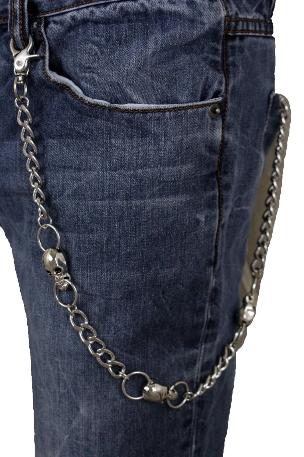 Skull Biker Wallet Chain - Silver Metal Jeans Chain 24"