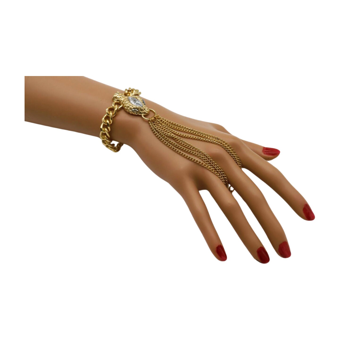 Color : Gold metal hand chain bracelet + silver rhinestones