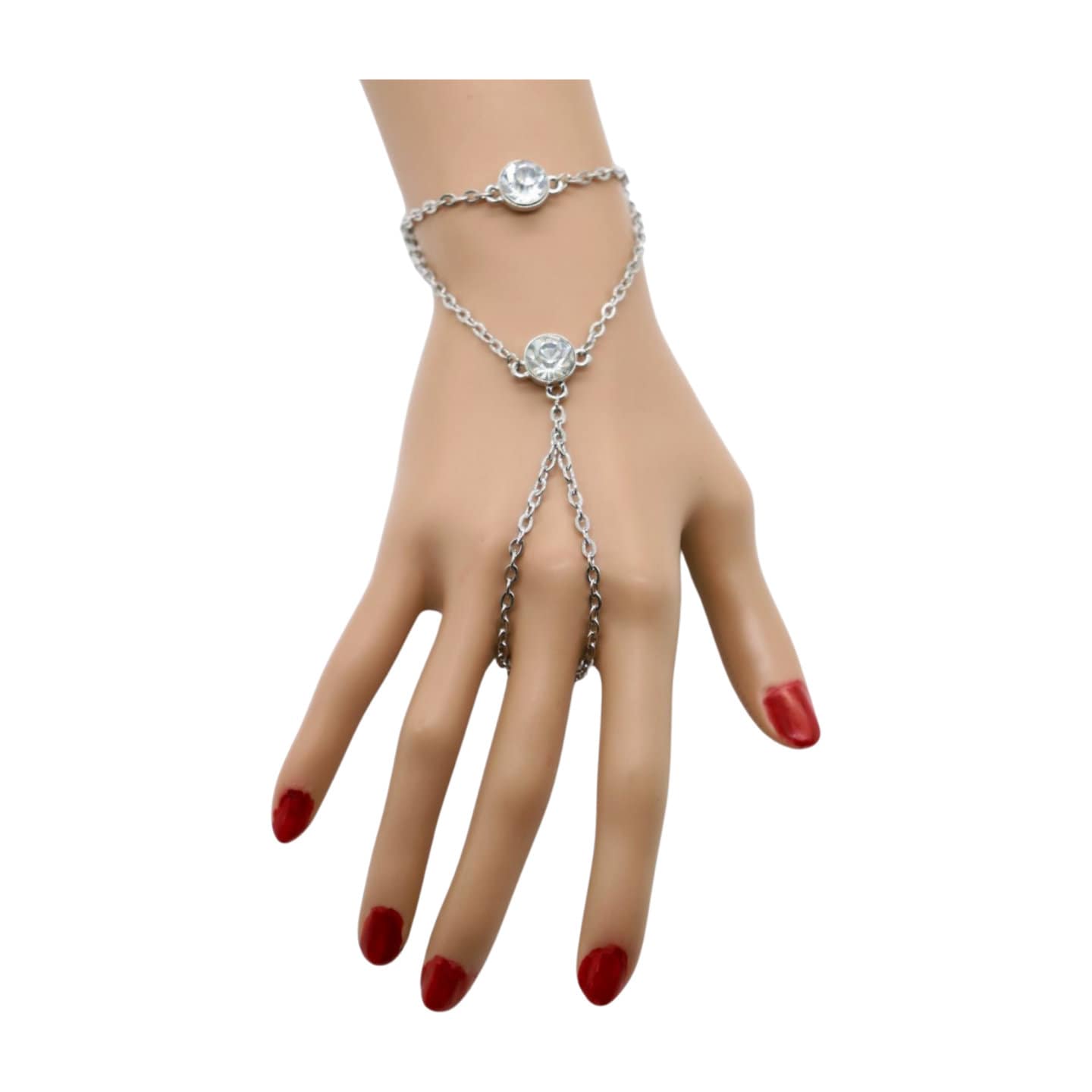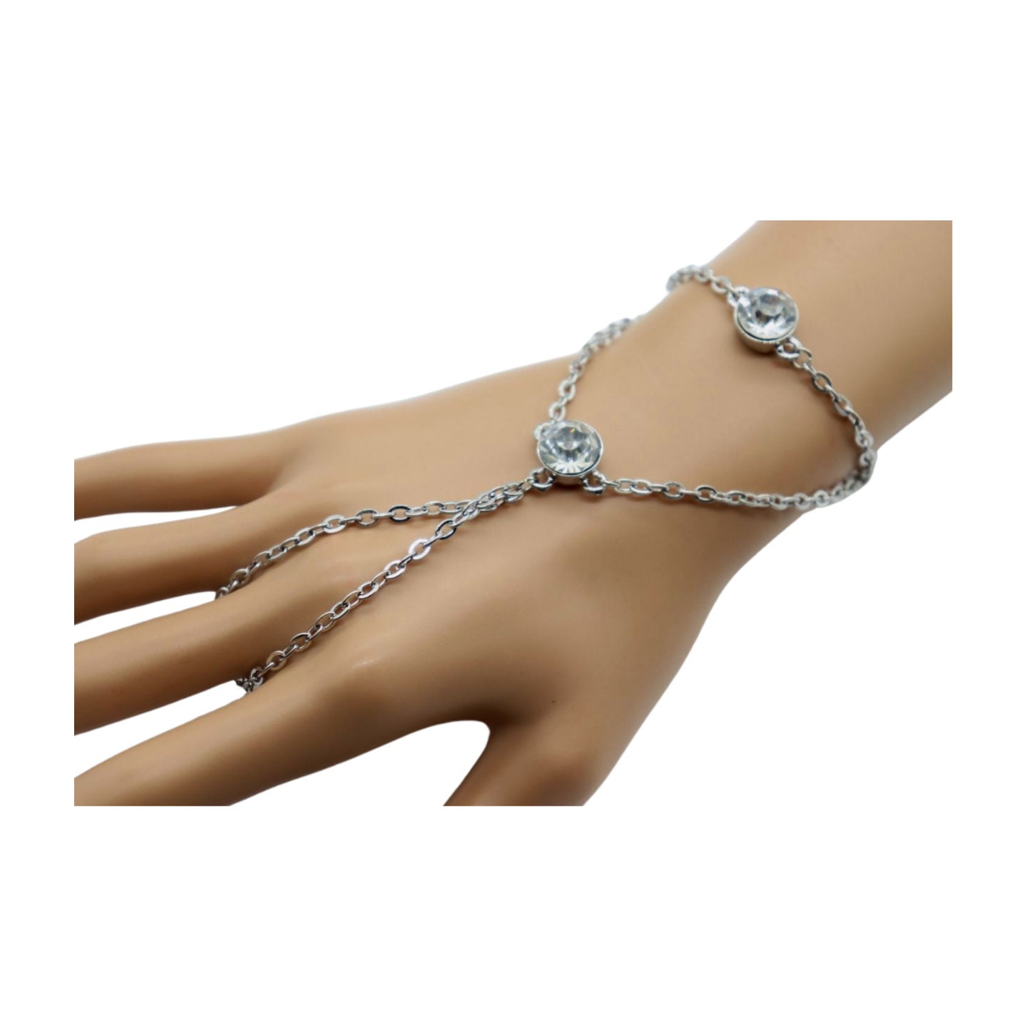 Slave Ring Fashion Jewelry: Elevate your style with this stunning hand chain bracelet, featuring a slave ring adorned with two blingy, shiny beads, adding a hint of glamour to your ensemble.