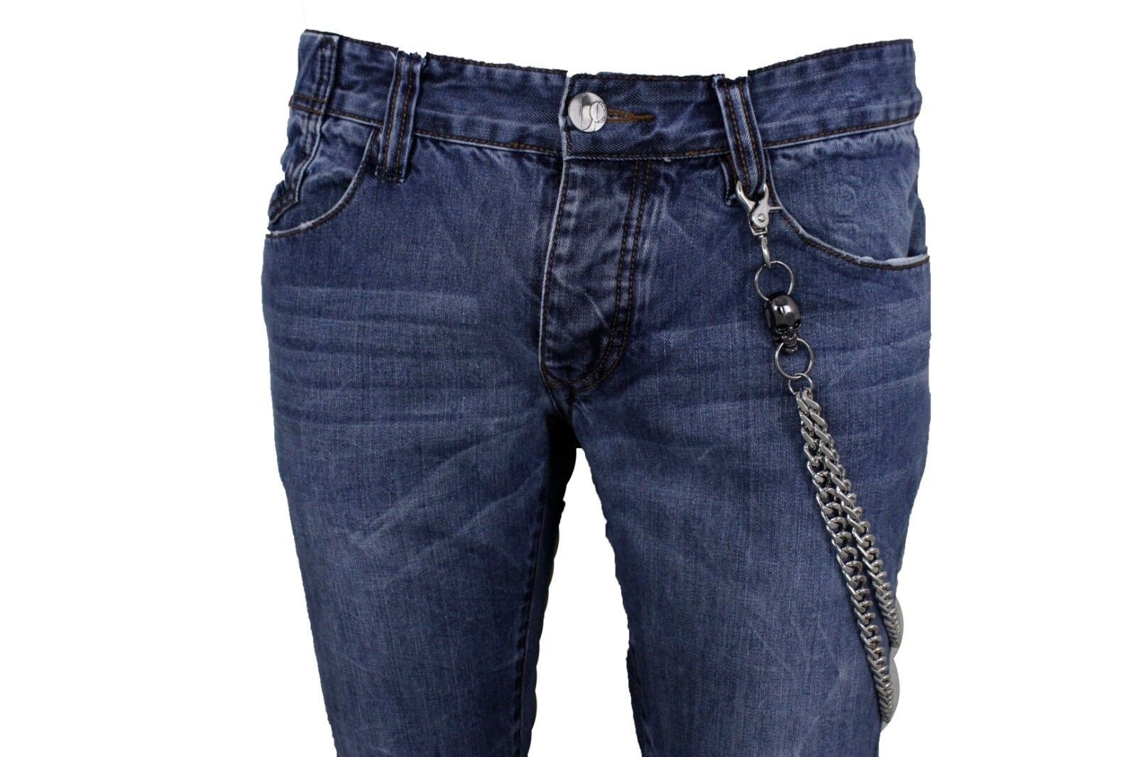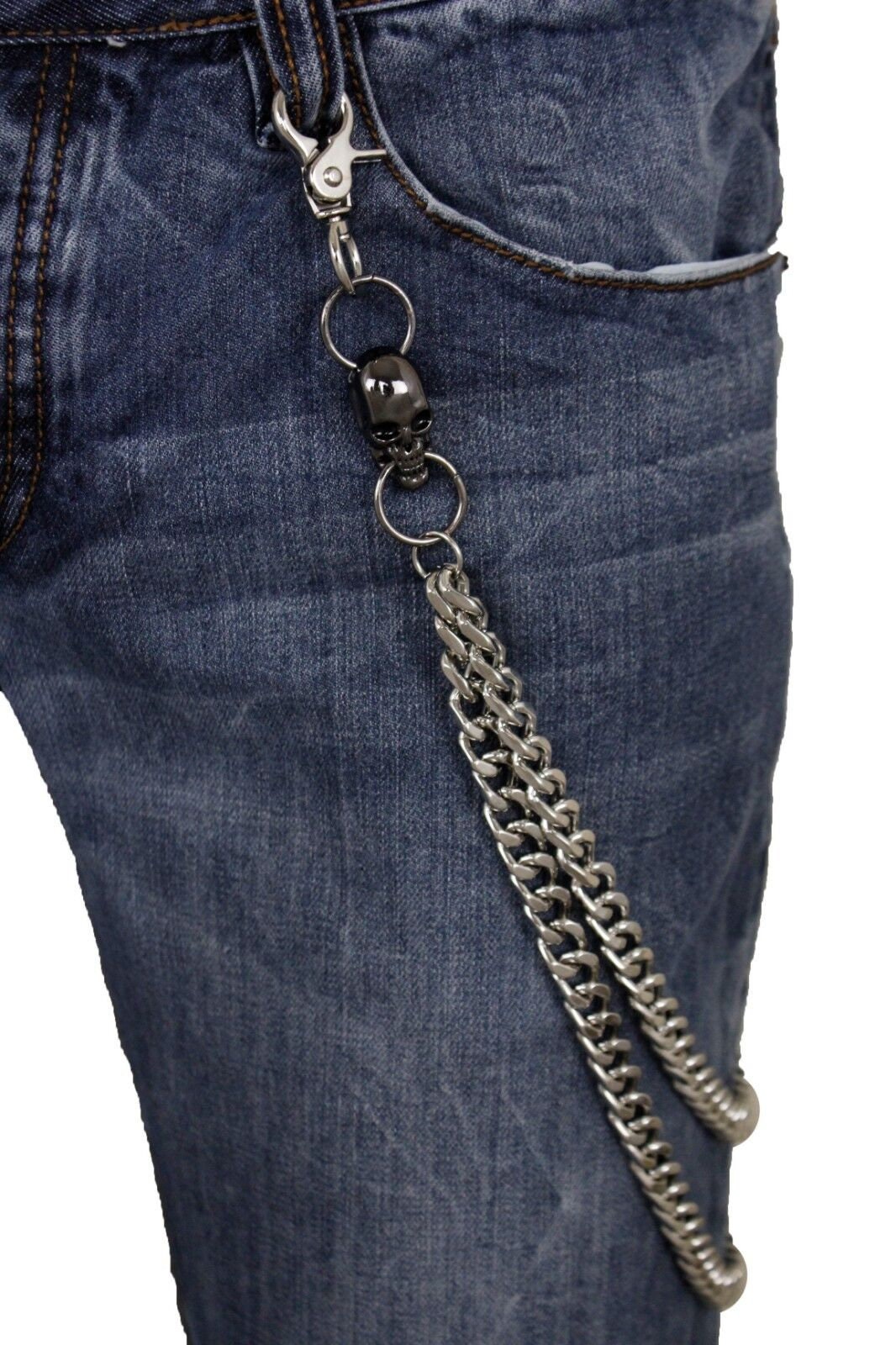 Elevate your biker style with our Men's Silver Wallet Chain adorned with Pewter Color Skull Charms, the ultimate accessory for making a bold fashion statement. Crafted with durability and style in mind, this wallet chain features silver metal chain links complemented by striking pewter color skull charms, adding an edgy and rebellious touch to your ensemble. Whether you're hitting the open road on your motorcycle or simply looking to elevate your everyday style, this wallet chain is the perfect accessory for adding some bling to your outfit.