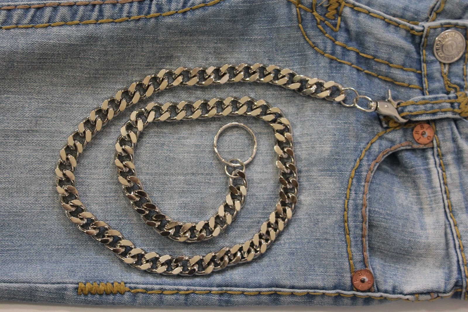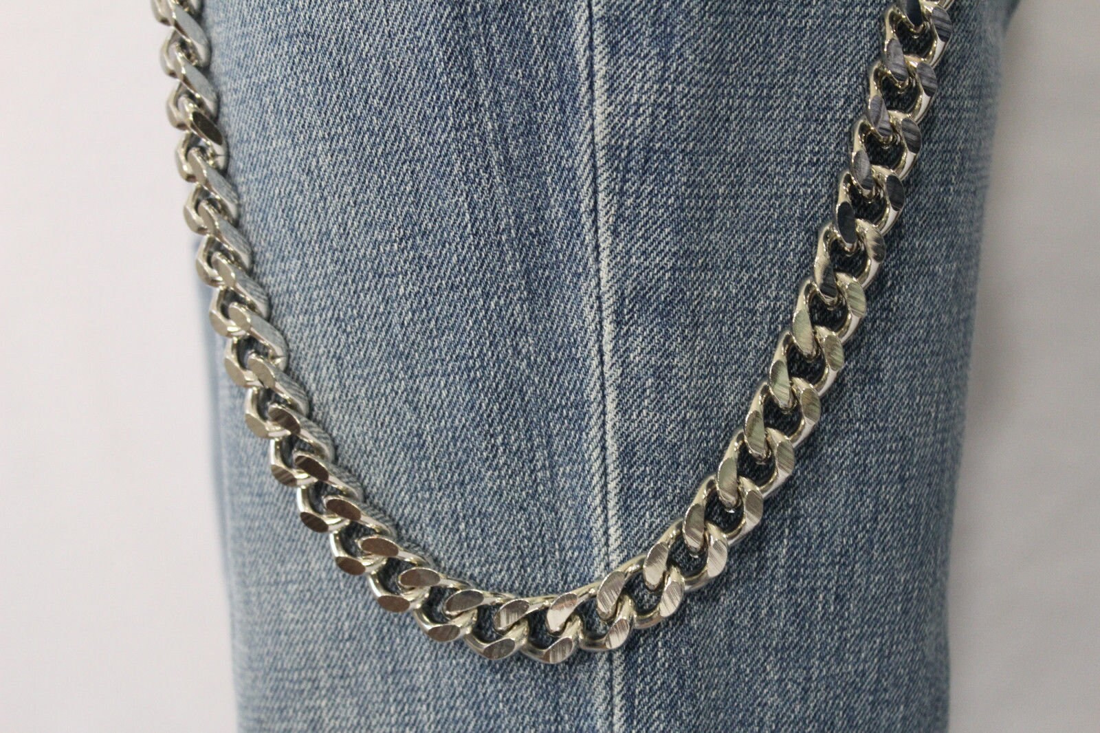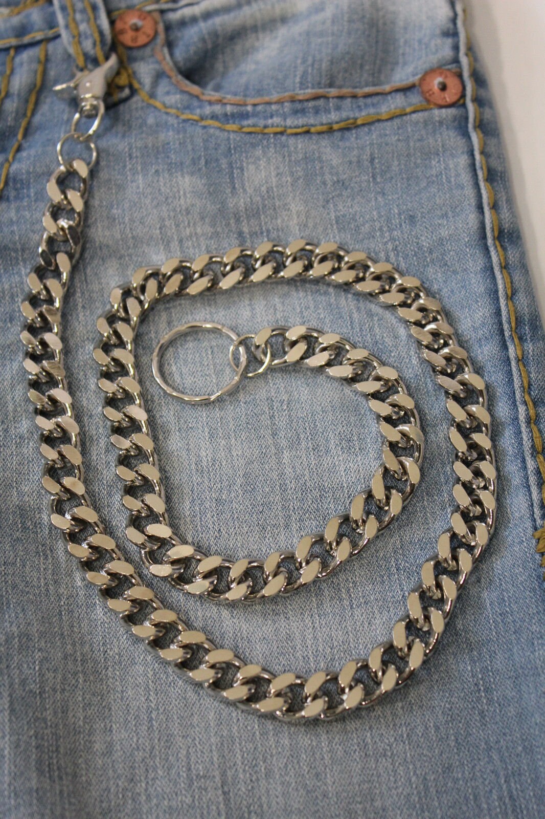 New Men Silver Wallet Chains Metal Biker Heavy Strong Long Strand Chunky Links