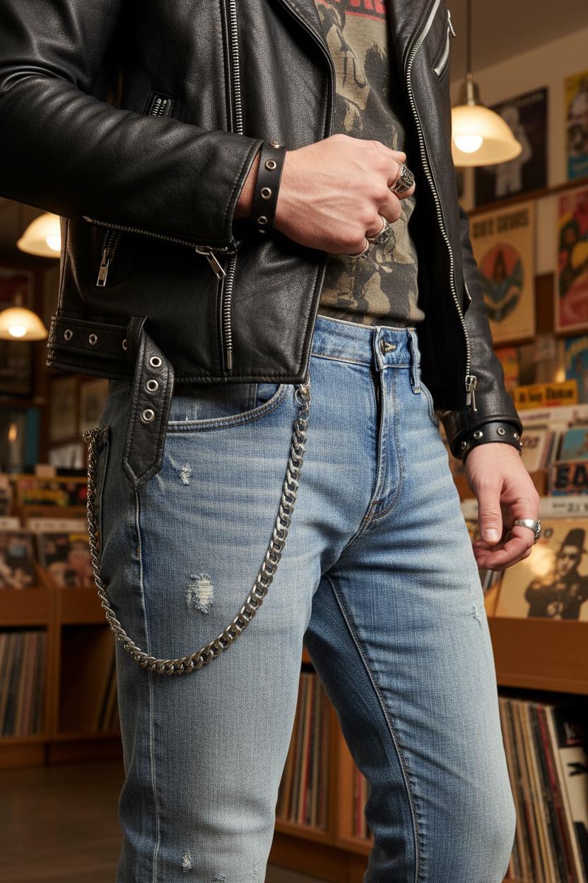 Biker Attitude: Pair this wallet chain with your favorite leather jacket, ripped jeans, and biker boots for a classic biker look that exudes confidence and attitude.