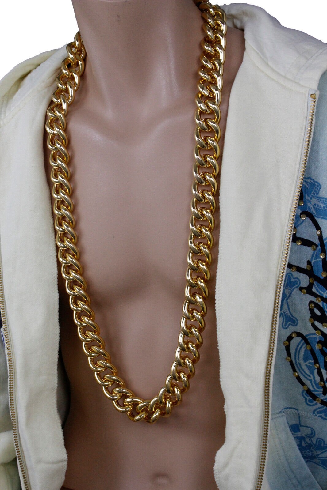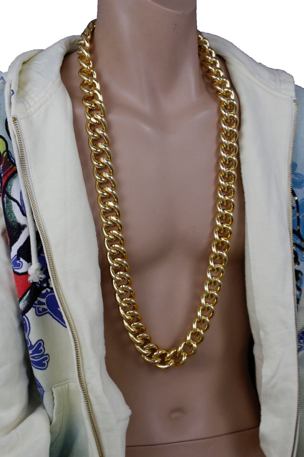 Elevate your streetwear with this bold Men Gold Metal Chain Necklace. Crafted from durable gold metal chain links, this necklace exudes a strong and stylish presence, perfect for those who embrace hip hop fashion and urban culture. The 18-inch drop and 37-inch chain length ensure a comfortable fit and distinctive look that commands attention.
