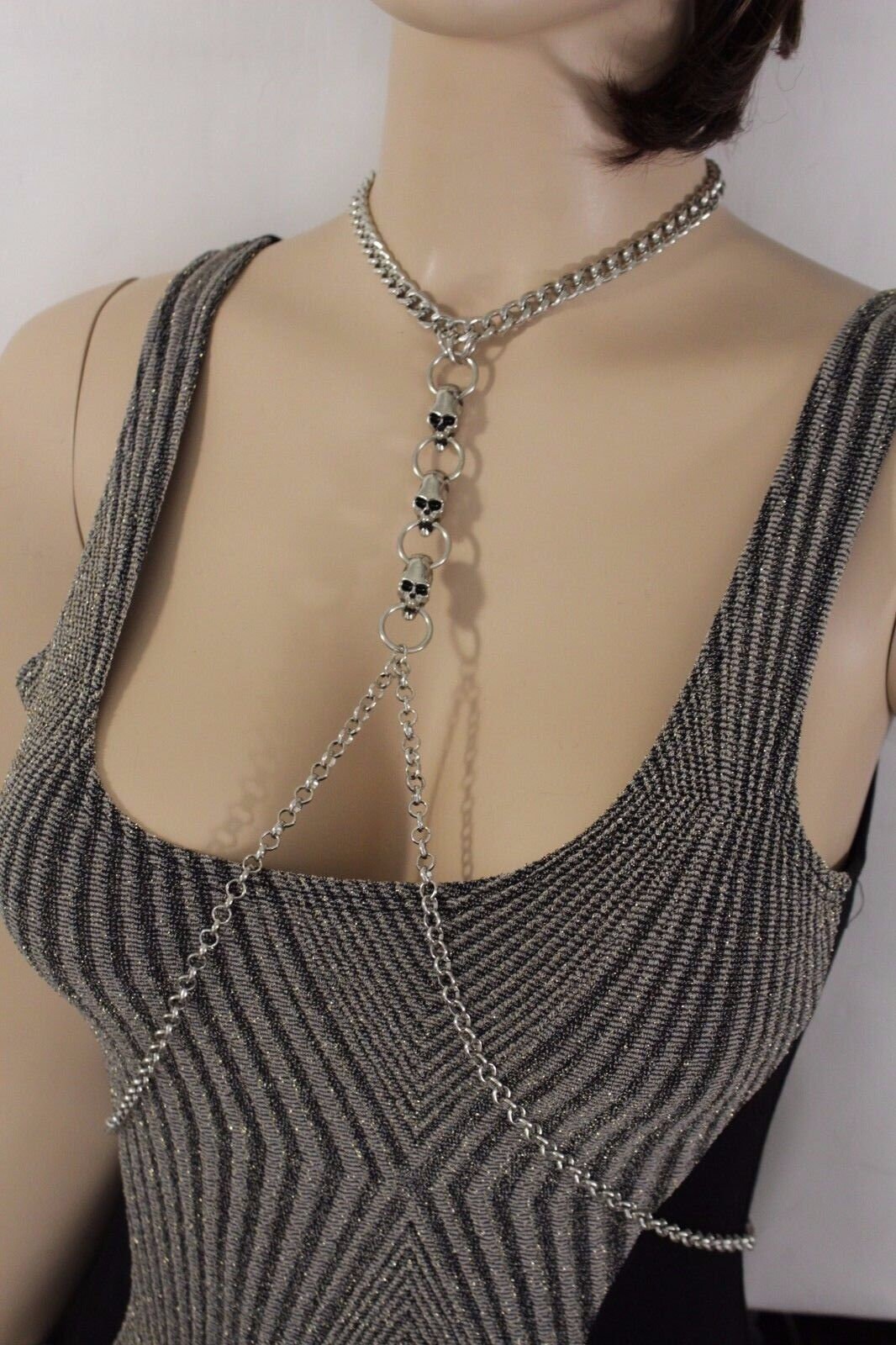 Transform your beach or party outfit with the Women Necklace Gothic Silver Body Chain, a statement piece that combines fashion with a rebellious edge. Embrace your unique style and make a bold impression wherever you go.