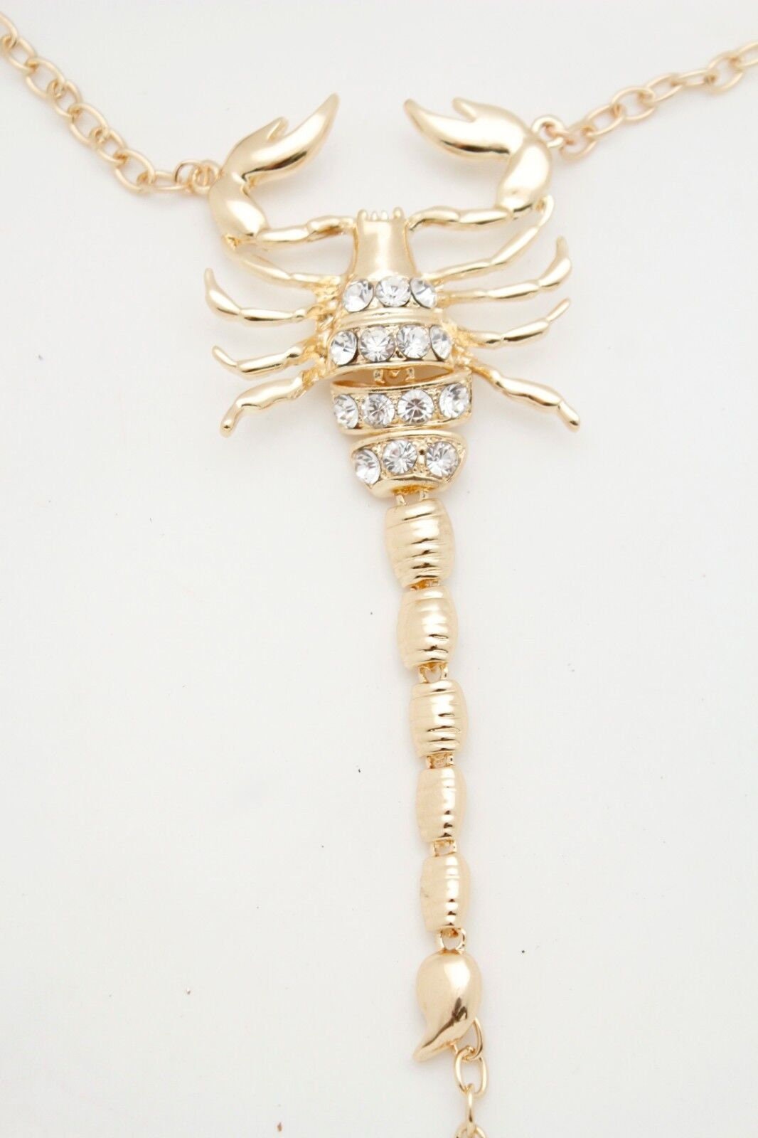 Gold Scorpion Body Chain: Rhinestone Charm Beach Jewelry