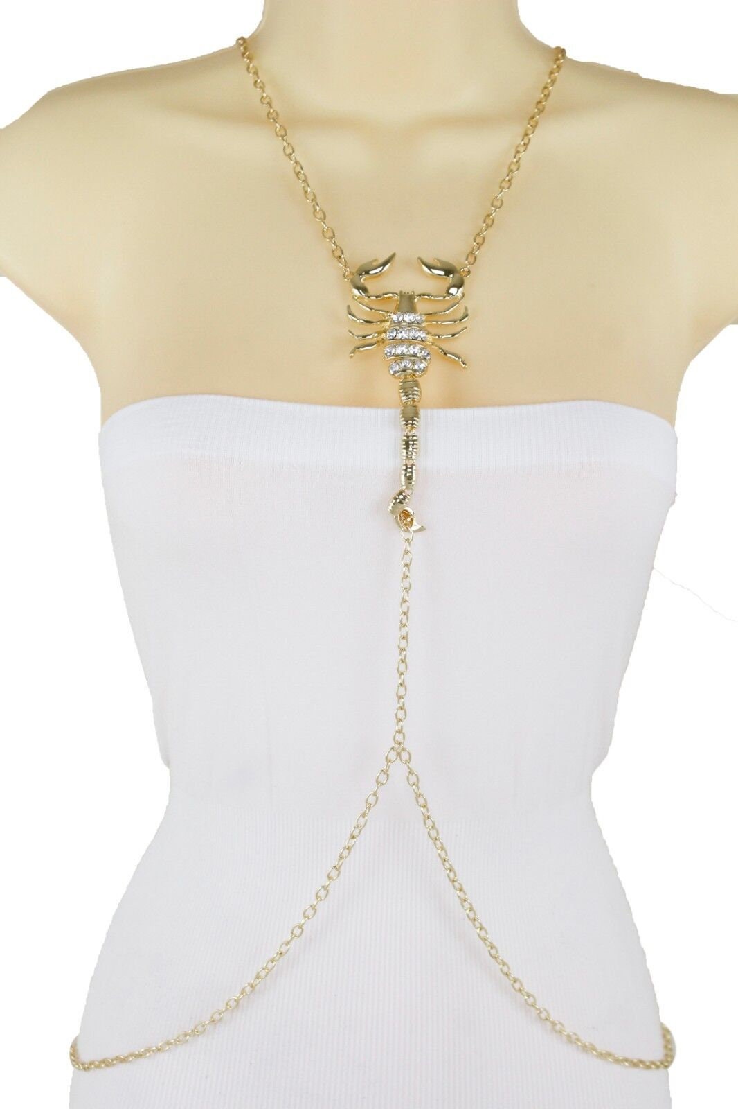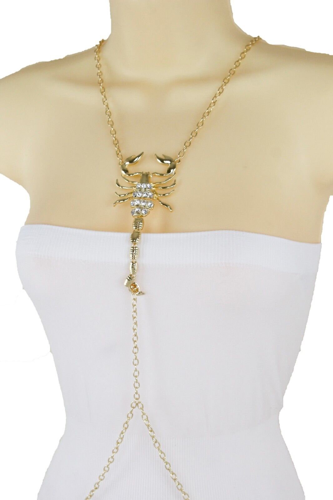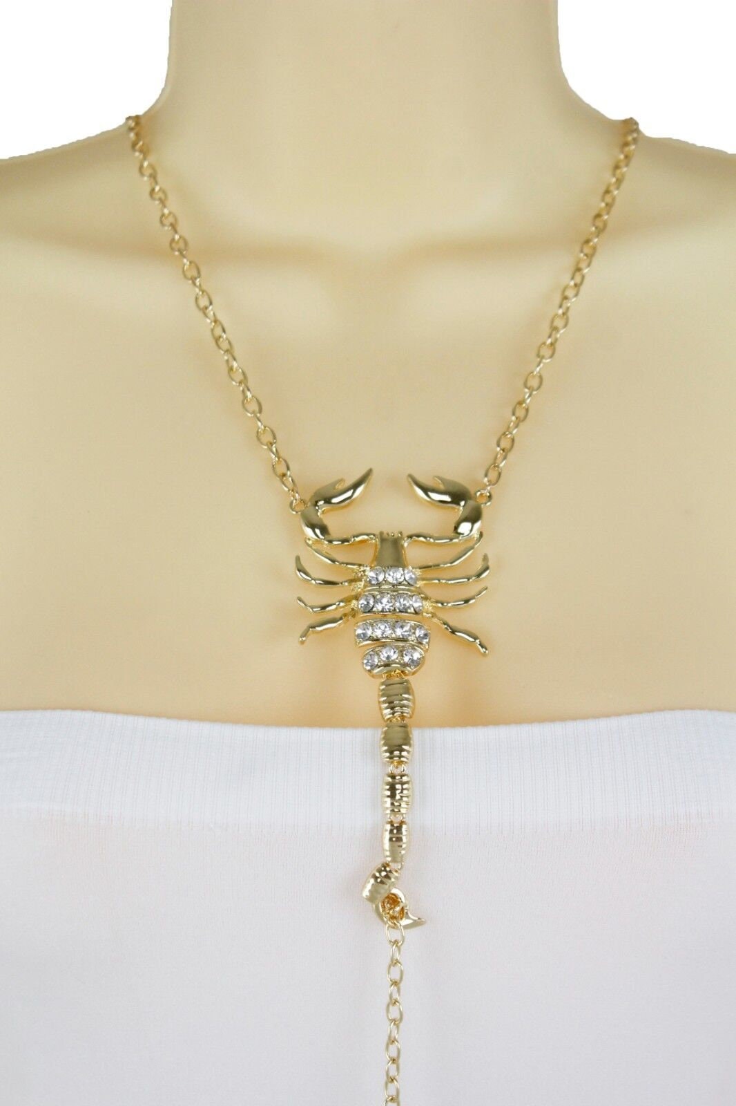 Women Necklace Gold Full Body Chain Trendy Long Jewelry Top Bling Scorpion Charm