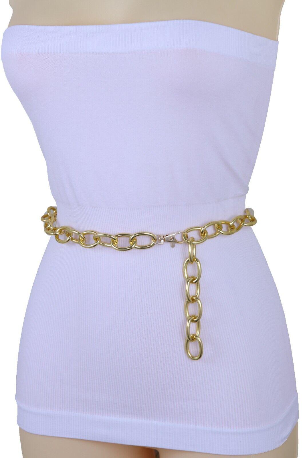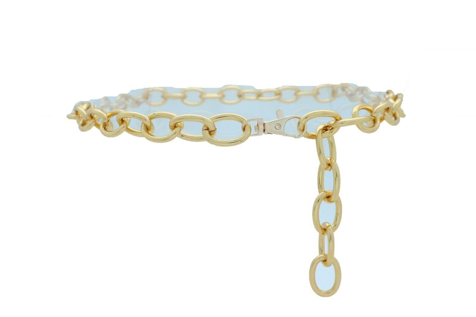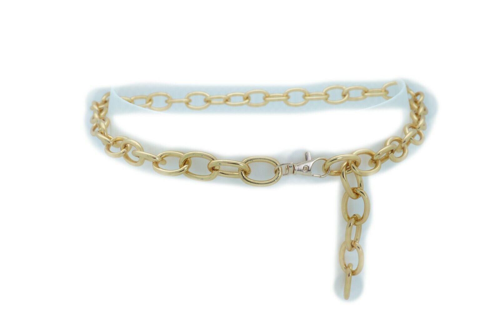 Women’s Gold Metal Chunky Oval Chain Belt – High Waist or Hip Fashion Belt
