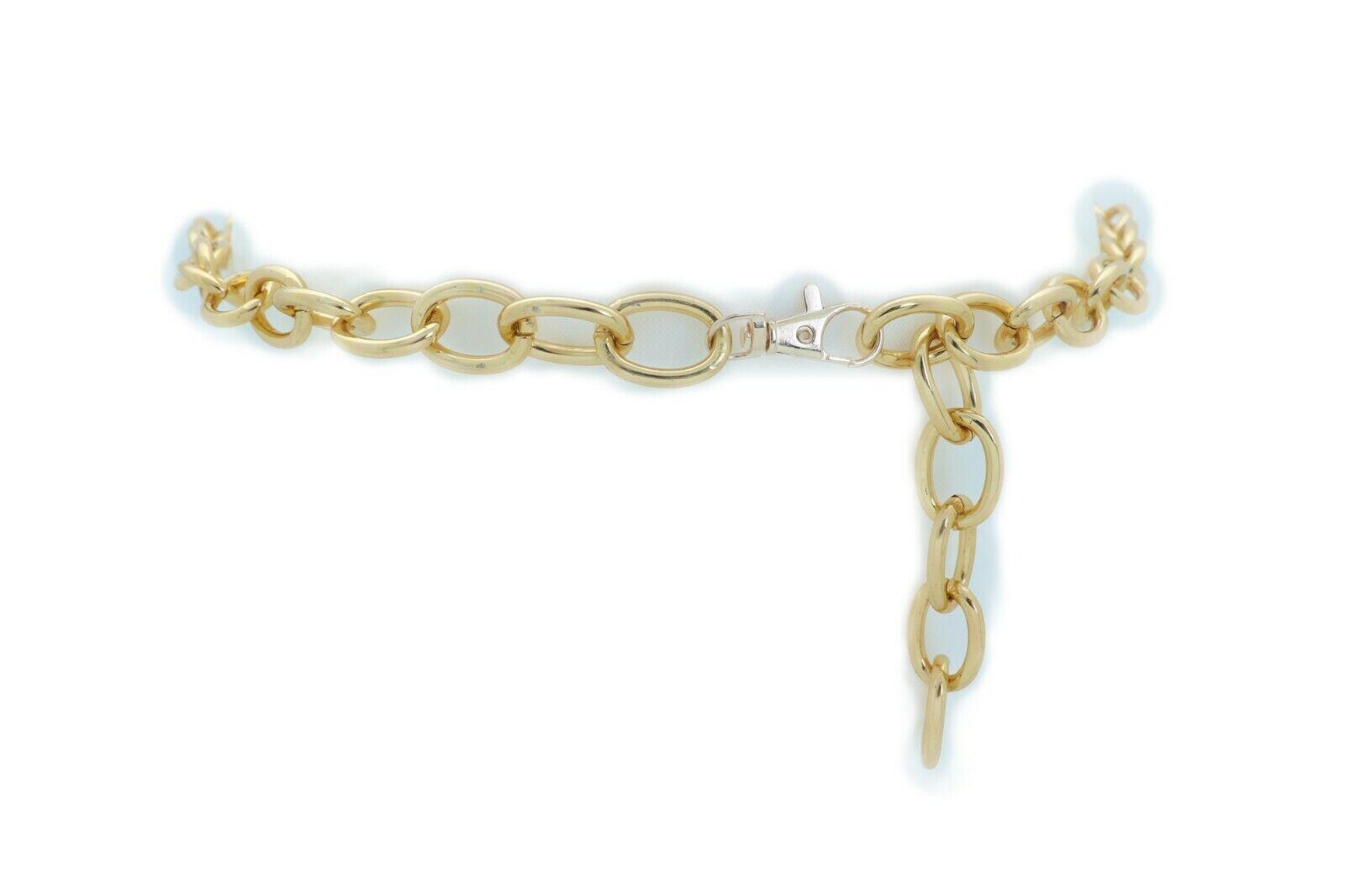 Chunky Oval Chain Design: The bold, eye-catching gold metal oval links bring an edgy, modern flair, perfect for fashion-forward looks.