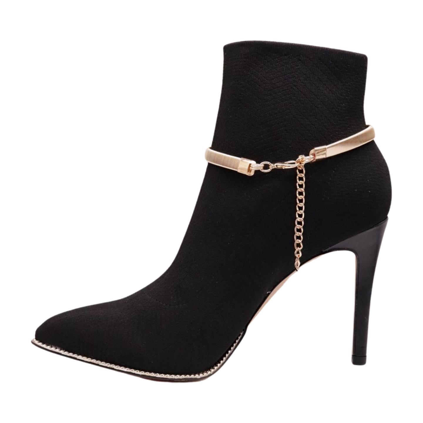 This listing is for a pair of gold-tone boot chain anklets (2 pieces total, one for each side). The design is intentionally minimal: a sleek metal band with an extender chain so you can adjust the fit and choose your vibe. It’s that polished detail that makes people assume you planned the outfit days ago—even if it was a last-minute decision and a strong coffee.