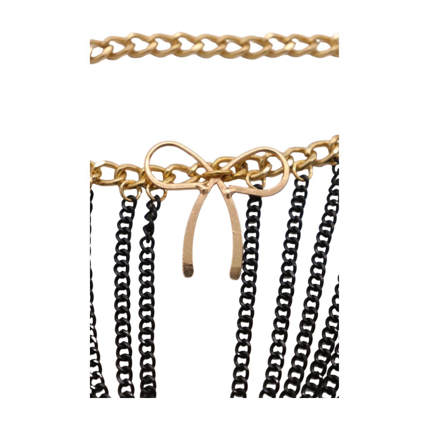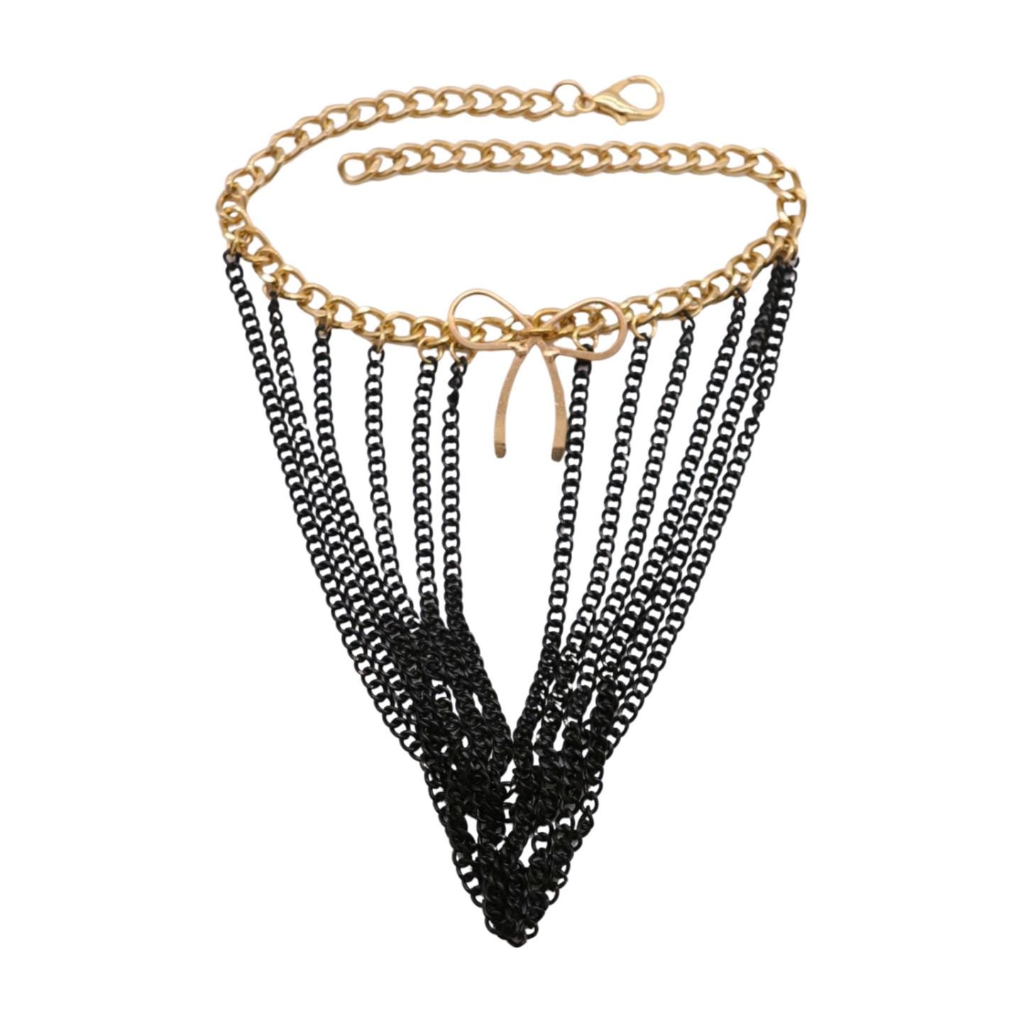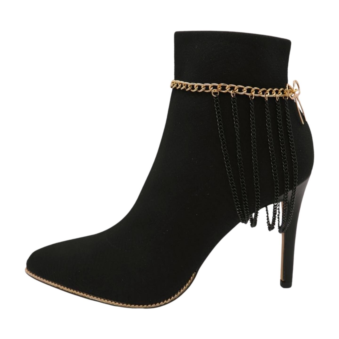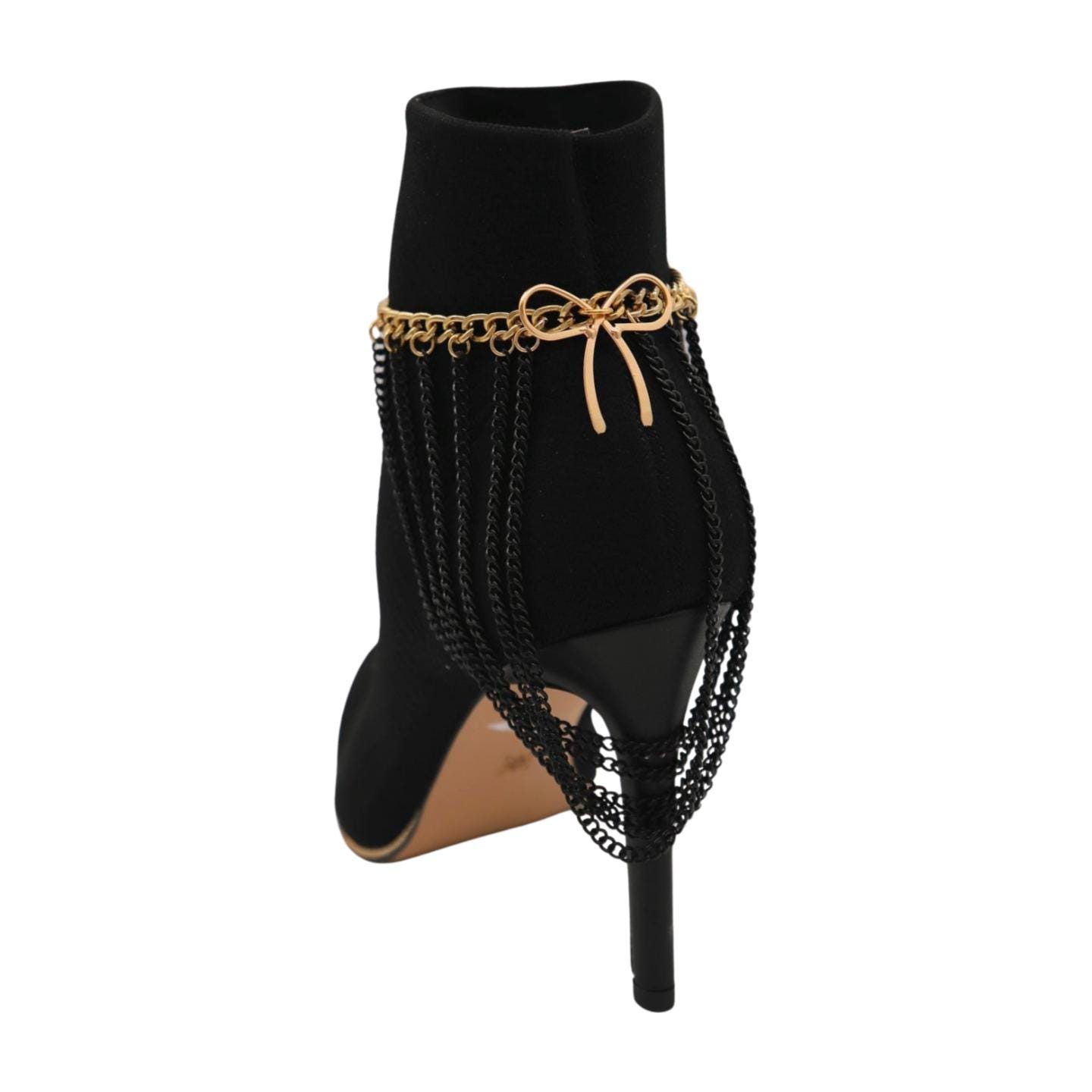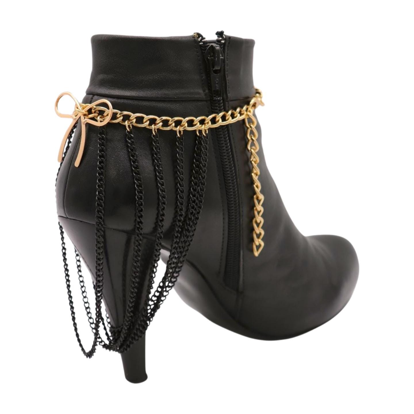 Black and gold boot chain anklet bracelet pair with bow charm draped chains BC198