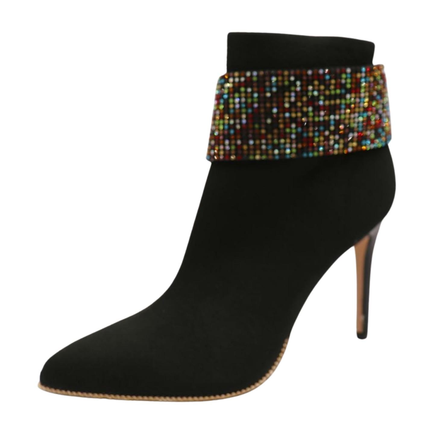 Add a touch of Western glamour to your boots with this Women’s Silver Metal Boot Chain Bracelet, featuring multicolor rhinestones and a chic black faux leather strap. Designed for those who love Western fashion with a trendy, edgy twist, this anklet bracelet wraps around your boot for a dazzling look. Handmade in the USA, it’s perfect for special events, parties, or a night out, and can also be worn as a statement accessory during the day.