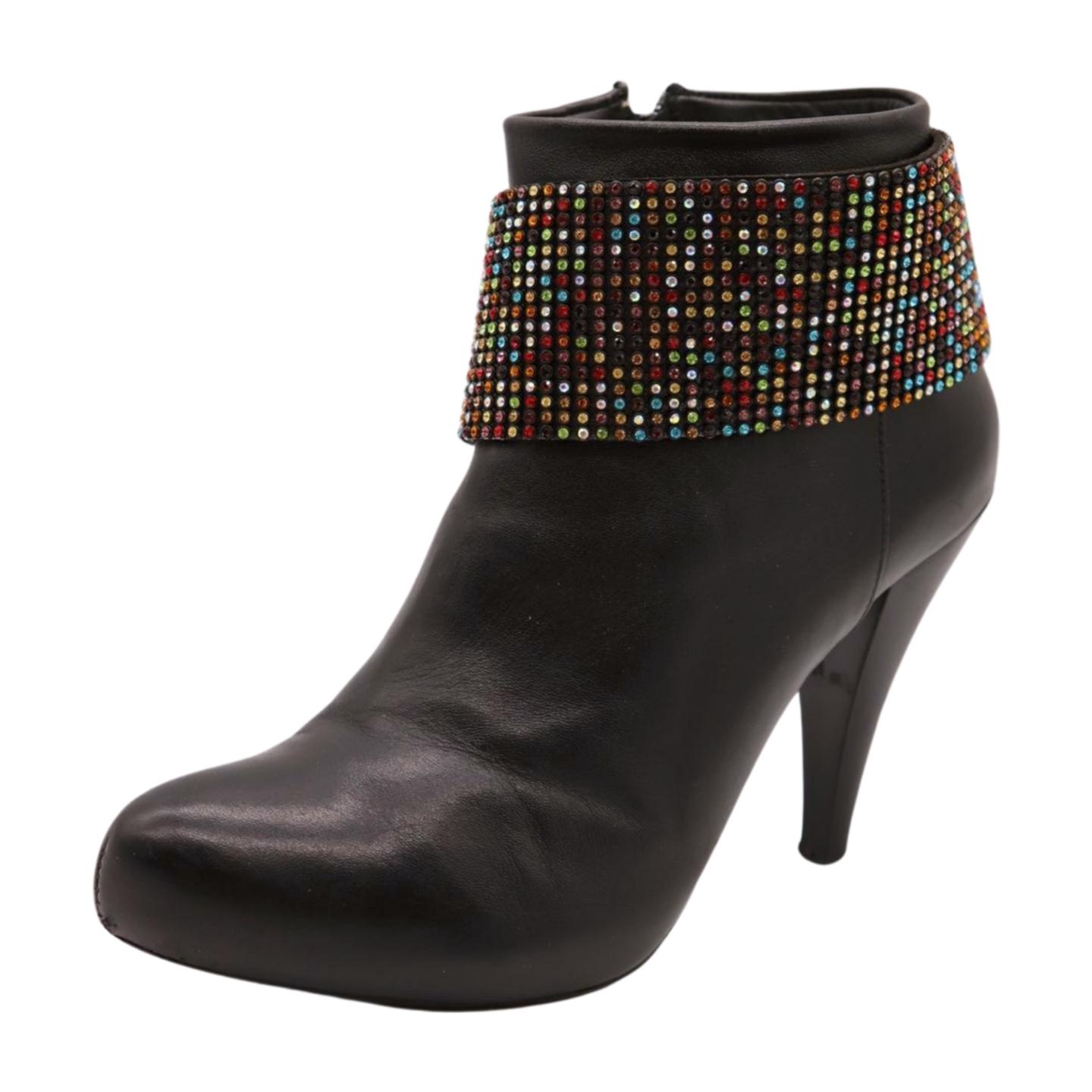Western Bling Style: This boot strap features silver metal chain links, paired with multicolor rhinestones for a fun and flashy look.
