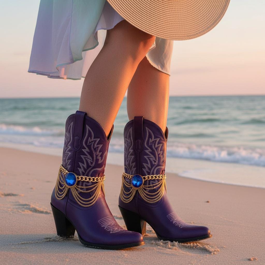 Wear them with black ankle booties for a sleek night-out vibe, or add them to cowboy boots for rodeo, Nashville weekends, line dancing, and festival fits. The adjustable extender helps you fine-tune the placement, and the lobster clasp keeps it easy. For the best look (and to protect the chain), style with a little slack so the waves can drape.