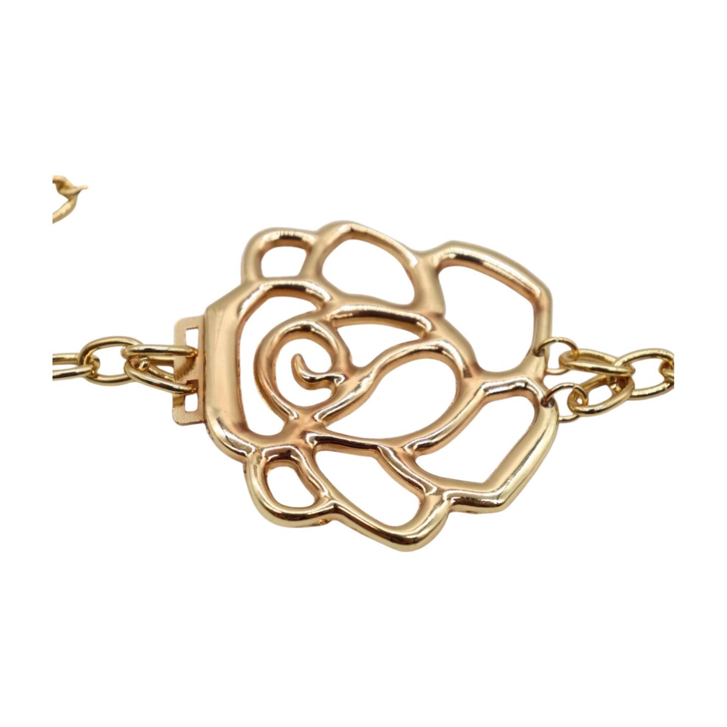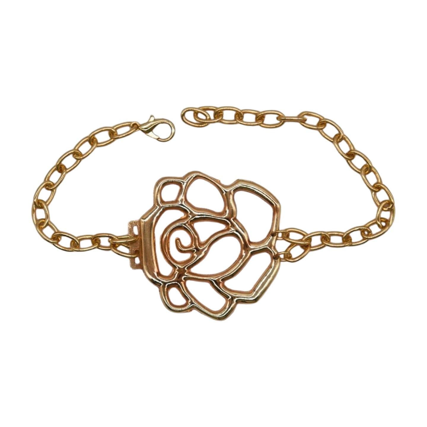 Women’s Gold Metal Boot Chain Bracelet – Western Style with Rose Flower Charm