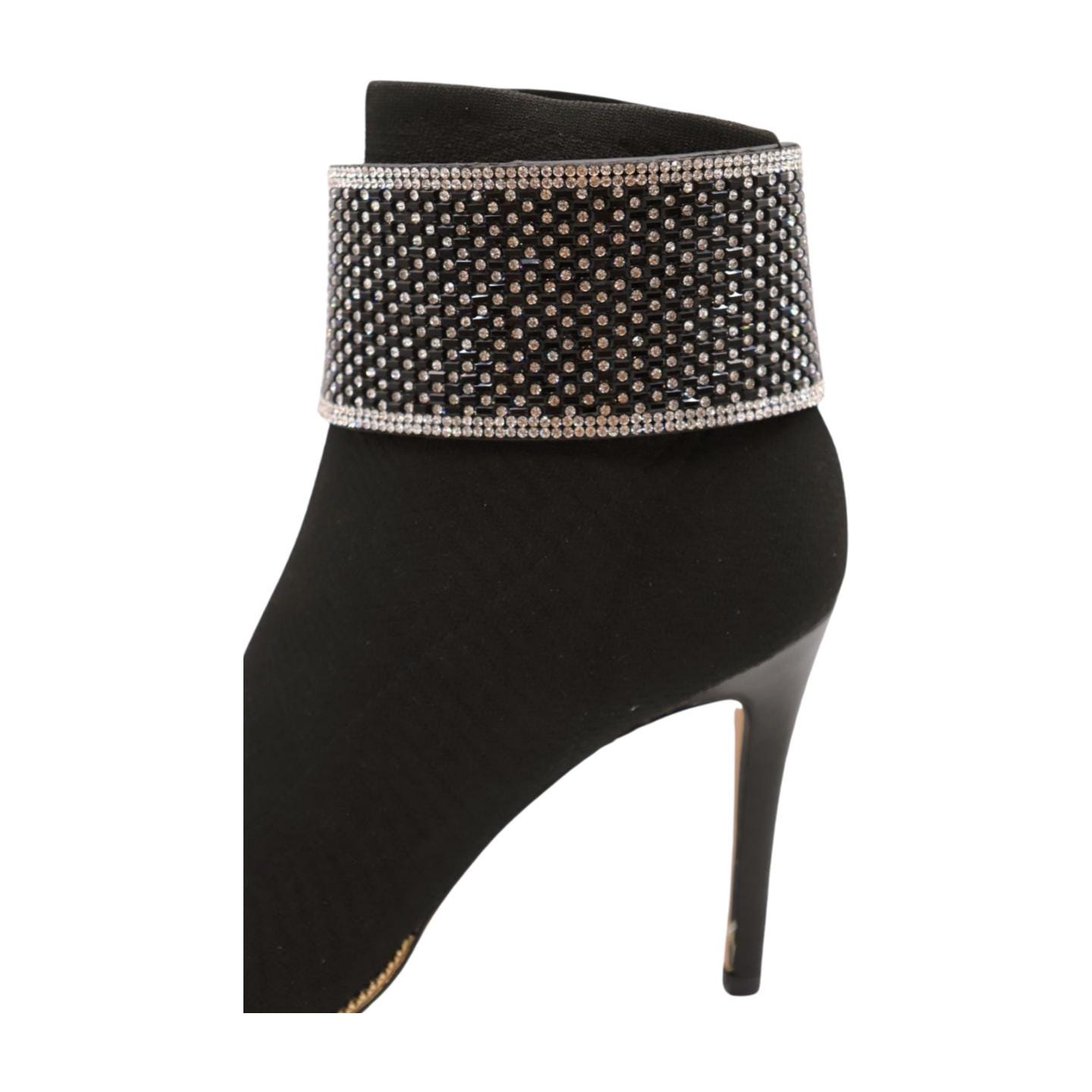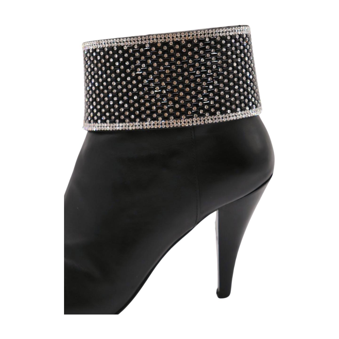 Rhinestone Boot Strap: Western Bling Anklet, Silver & Black