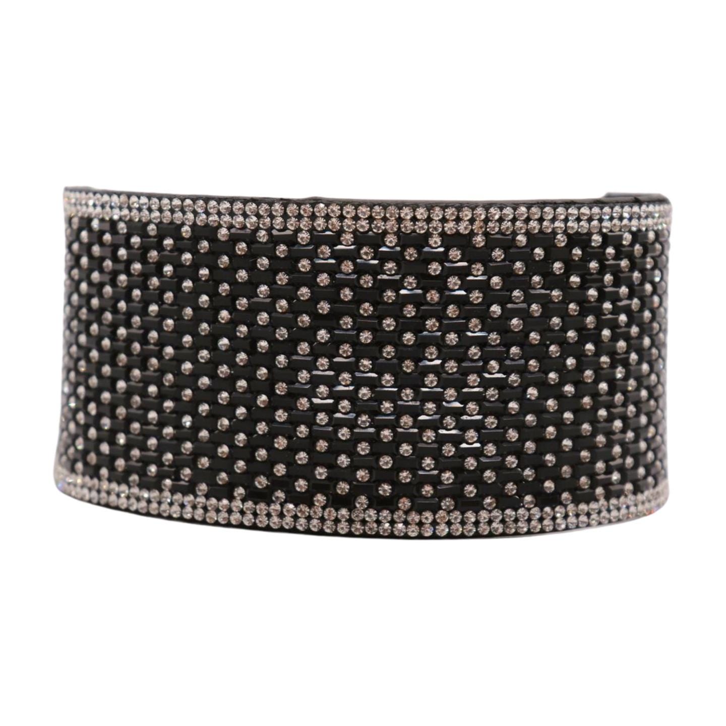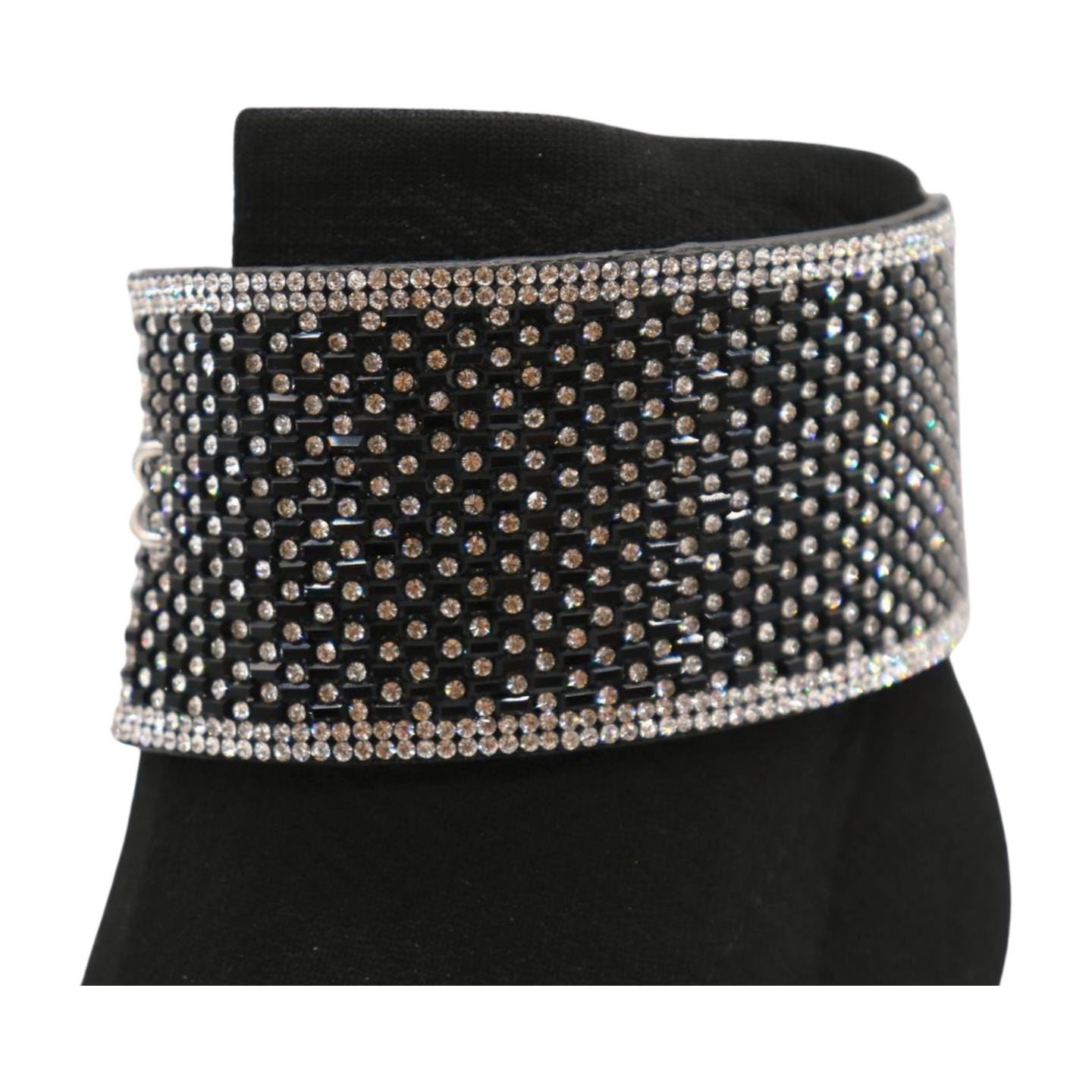 Fancy Western Boot Strap Bracelet – Glamorous Silver Rhinestone and Black Bead Design