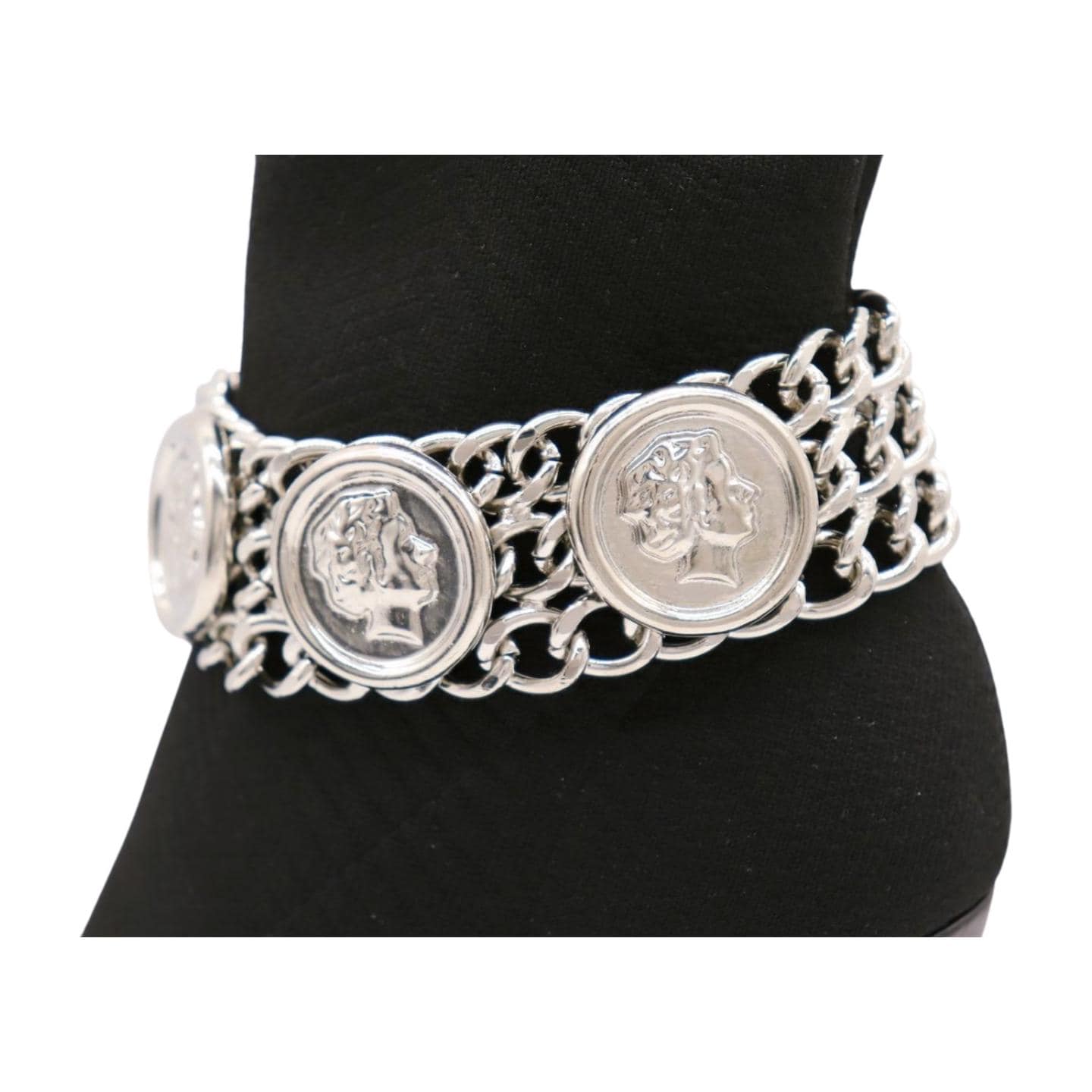 Order your Silver Coin Medallion Boot Chain Bracelet today to add a cool, statement-making piece to your wardrobe!