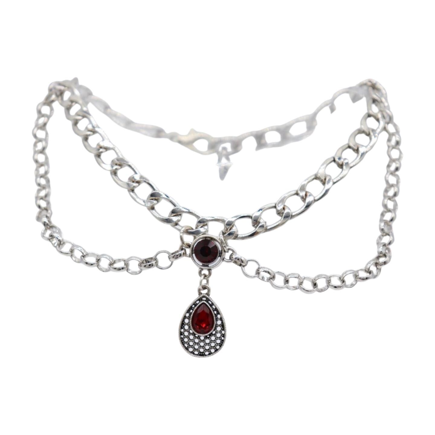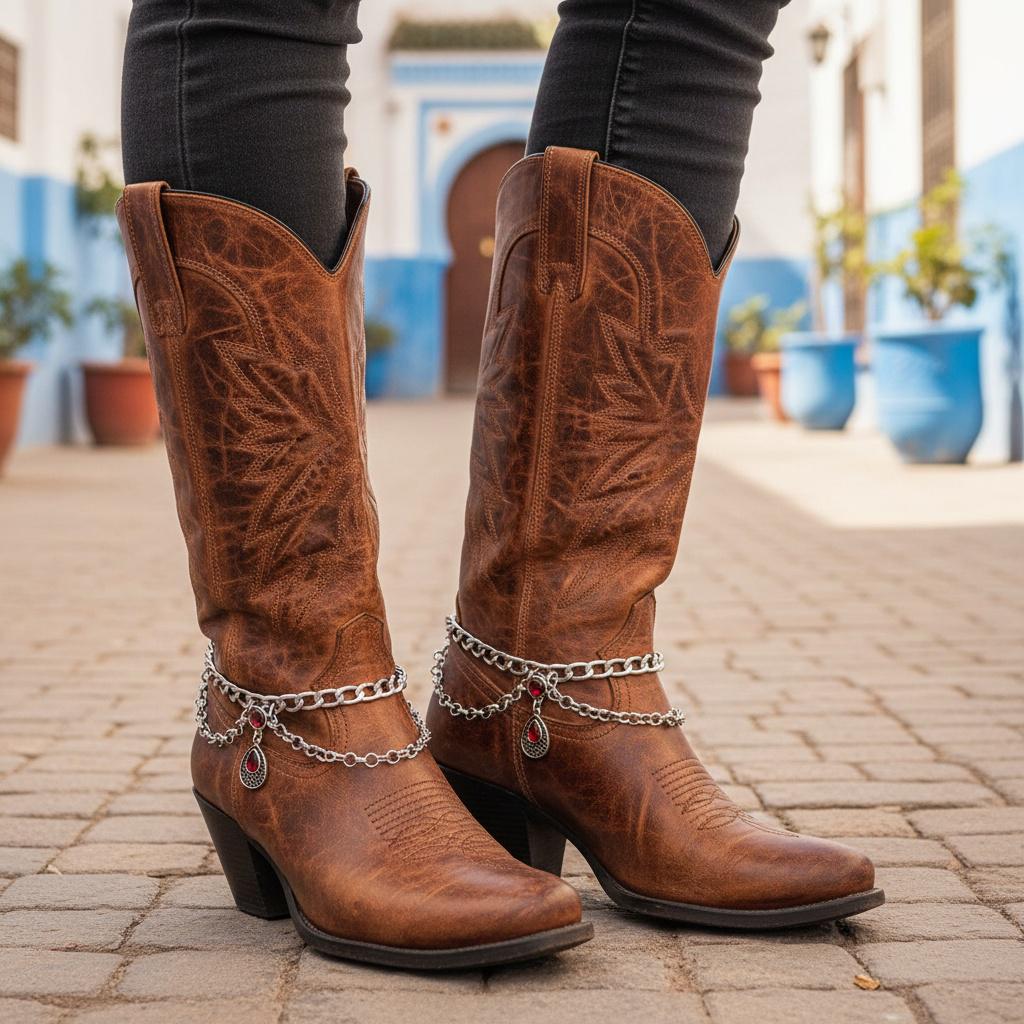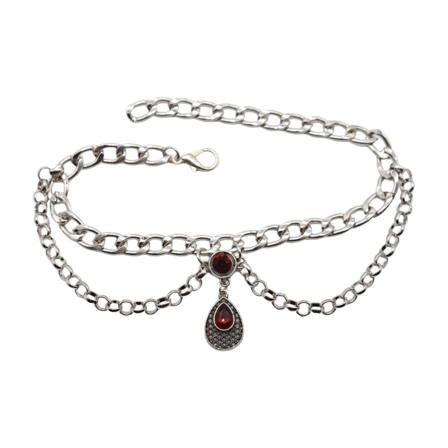 Add a bold finishing touch to your boots with this handmade boot chain bracelet set. The bc174 design features silver-tone chain links with a layered wave drape and a vintage-inspired red drop charm that creates a clean statement at the ankle. It’s made to style ankle boots, cowboy boots, and riding boots for day-to-night outfits, Western nights out, and festival looks.