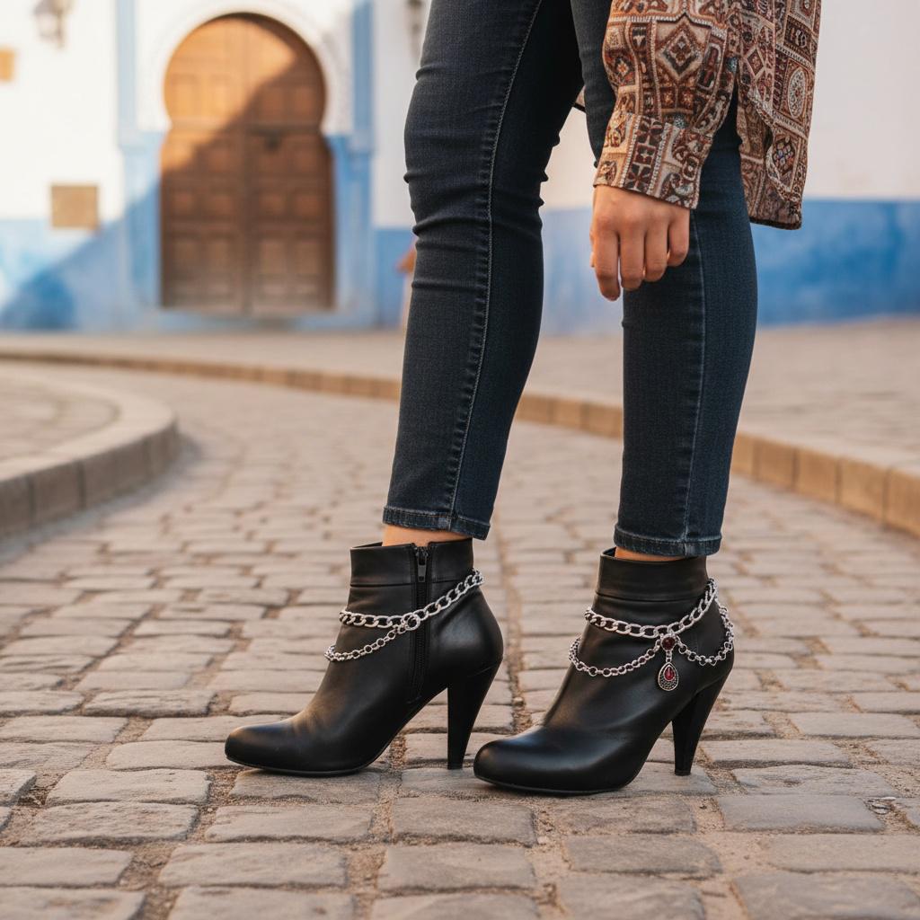 Comfortable fit tip: wear with a slight drape rather than a tight wrap. A relaxed drape looks more natural on the boot and helps reduce tension on the chain during wear.