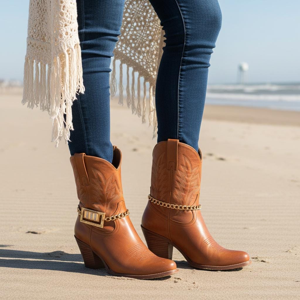 These are boot jewelry chains (not the boots), sold as a pair (2PCS) so both sides look balanced and finished. The adjustable 11"–15" length makes styling easy across different boot shafts and silhouettes—booties, western boots, and heeled ankle boots all love this look.