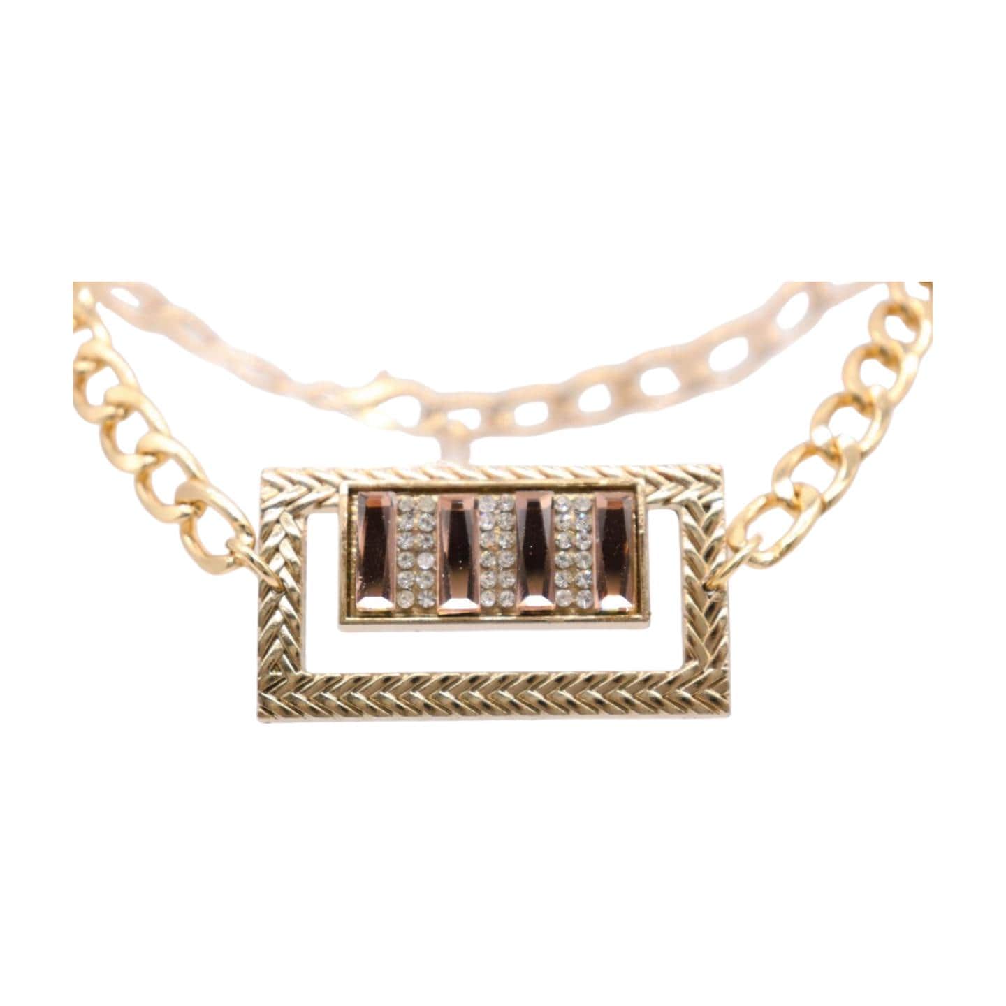Color: Gold metal chain links with square charm and silver-gold rhinestone beads