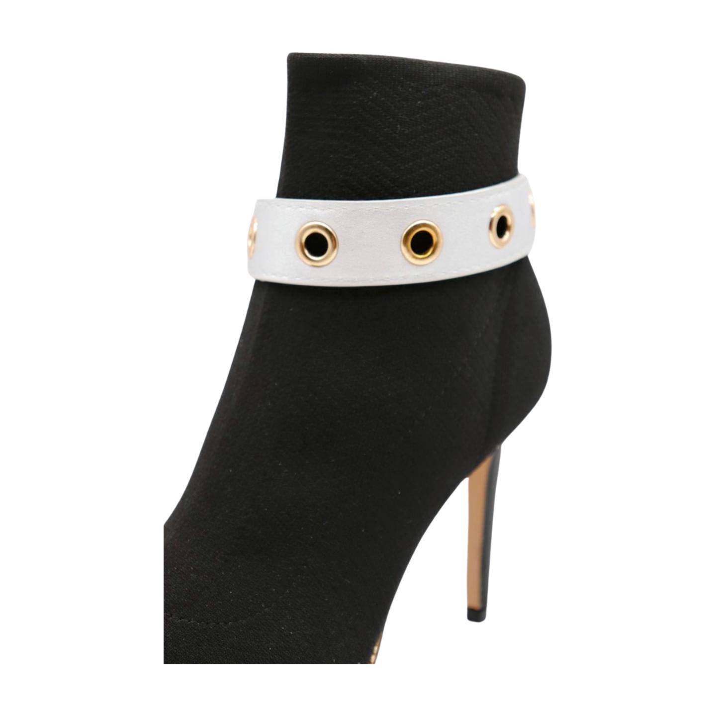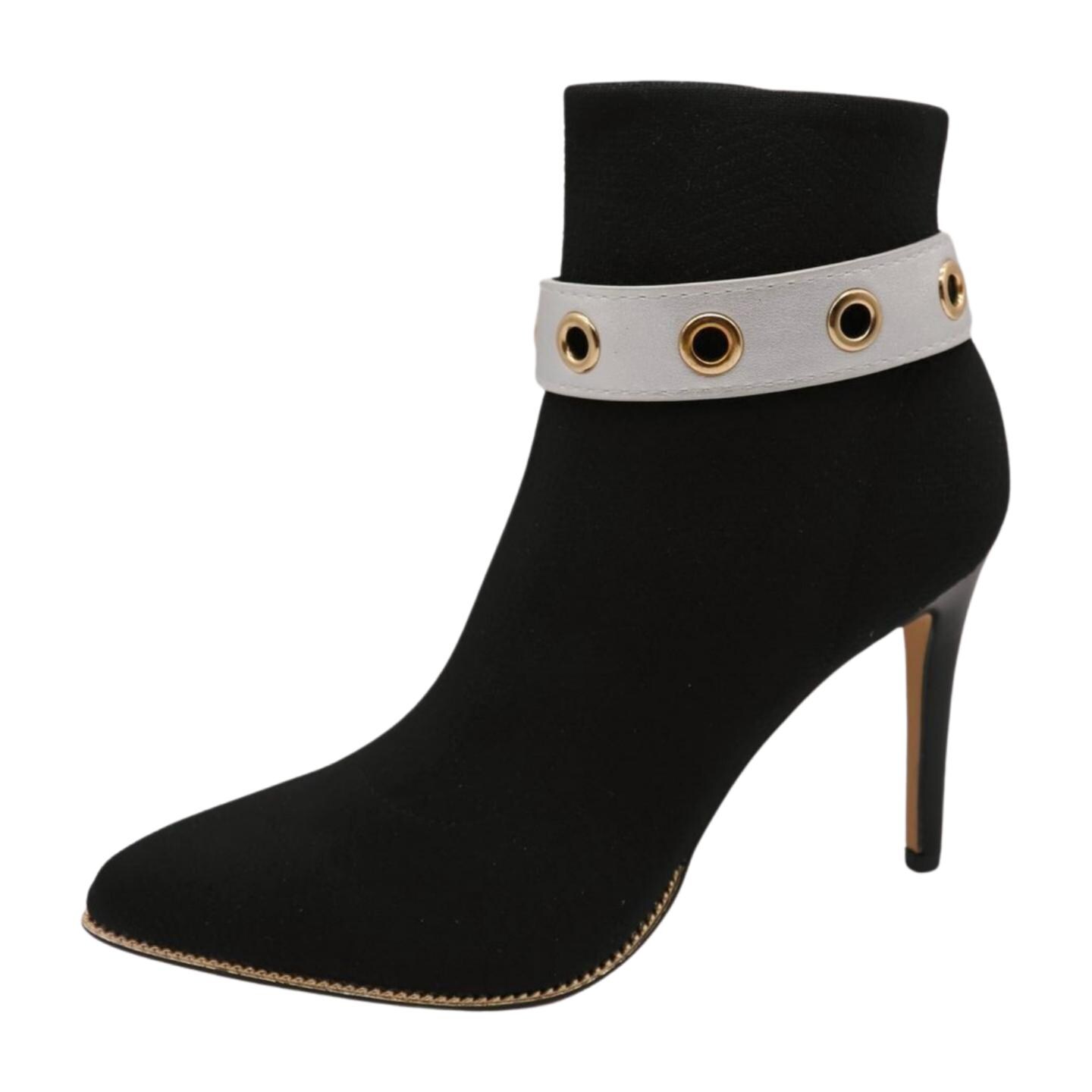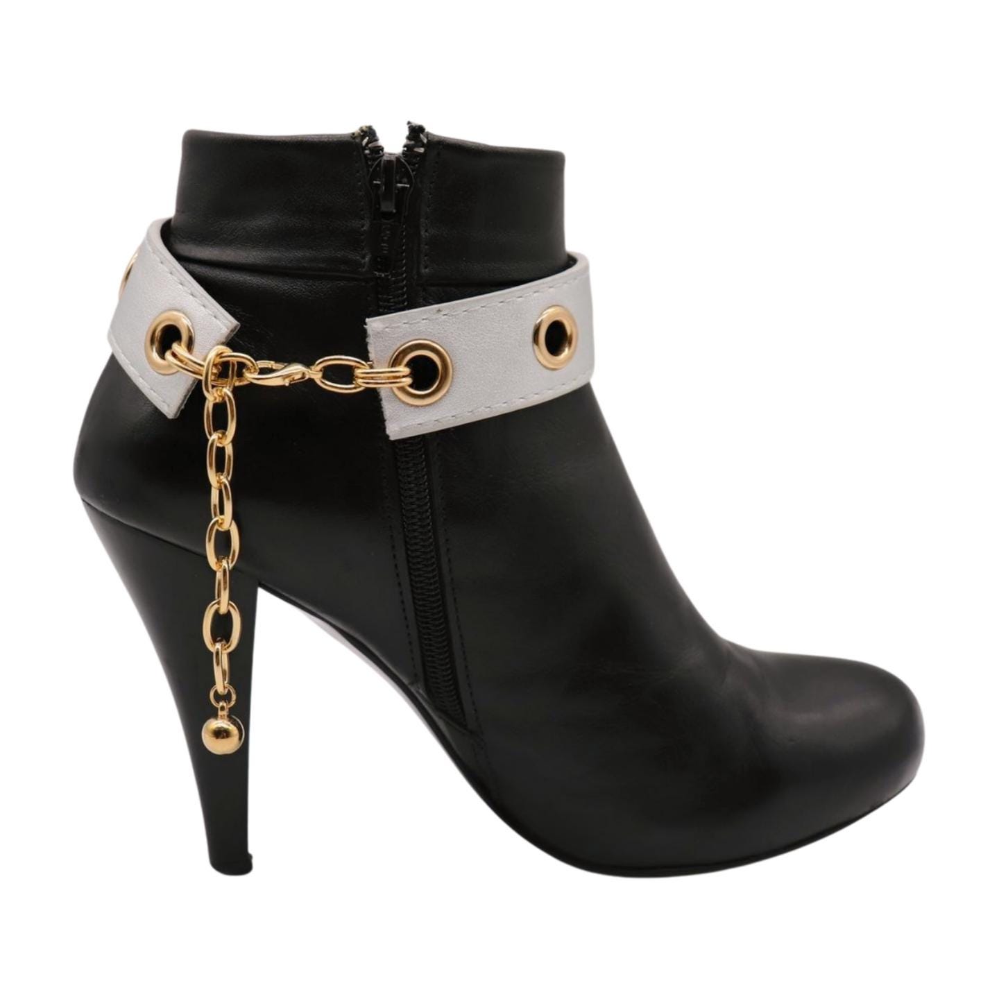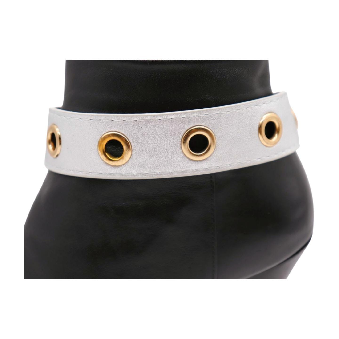 Women’s Gold Boot Chain Bracelet with Silver Faux Leather Band – Adjustable Anklet Strap