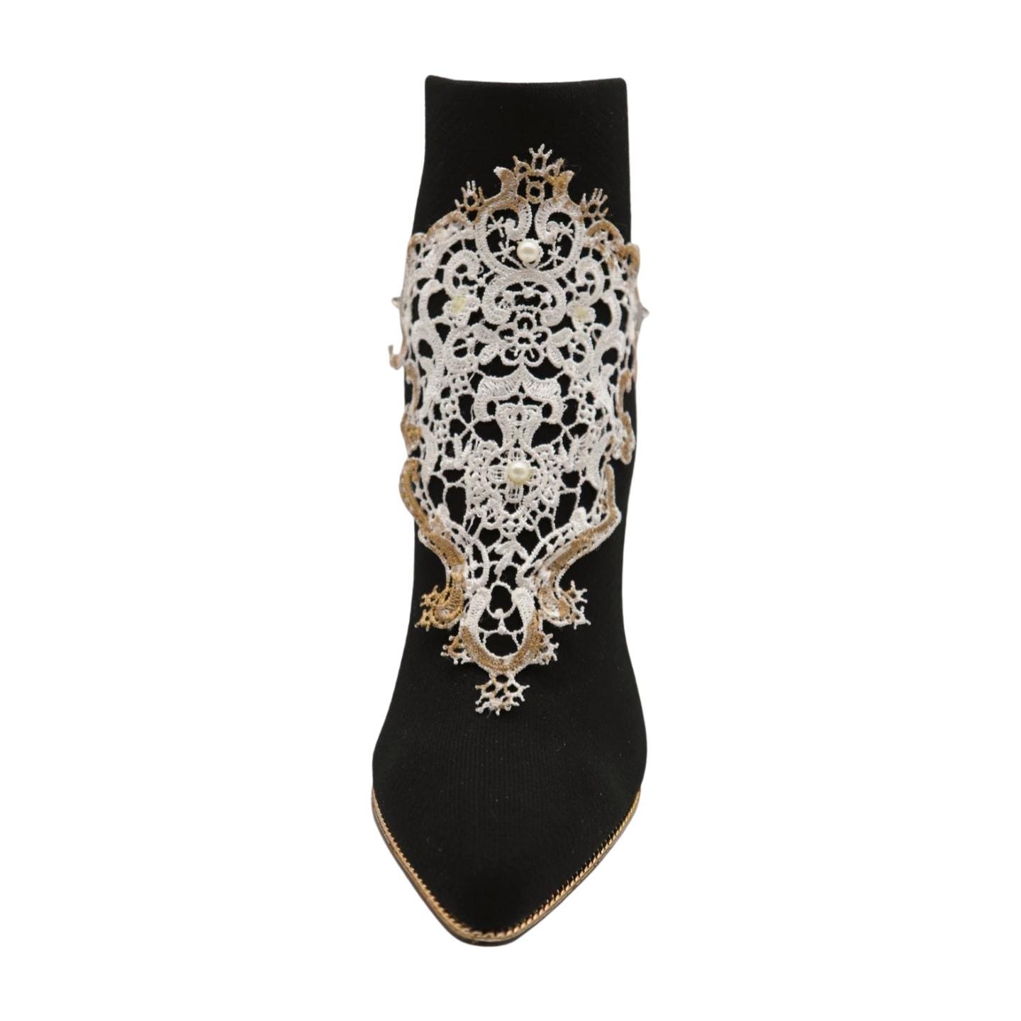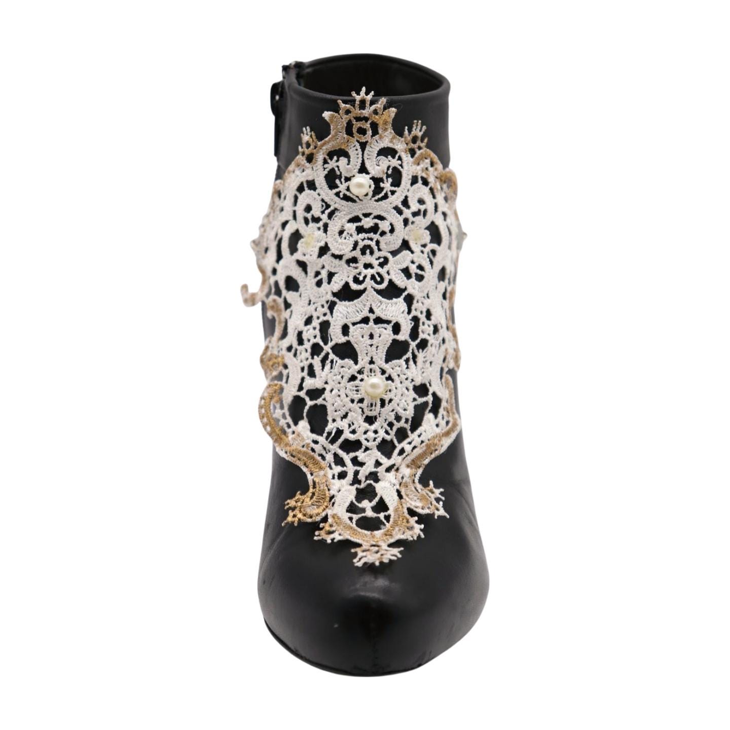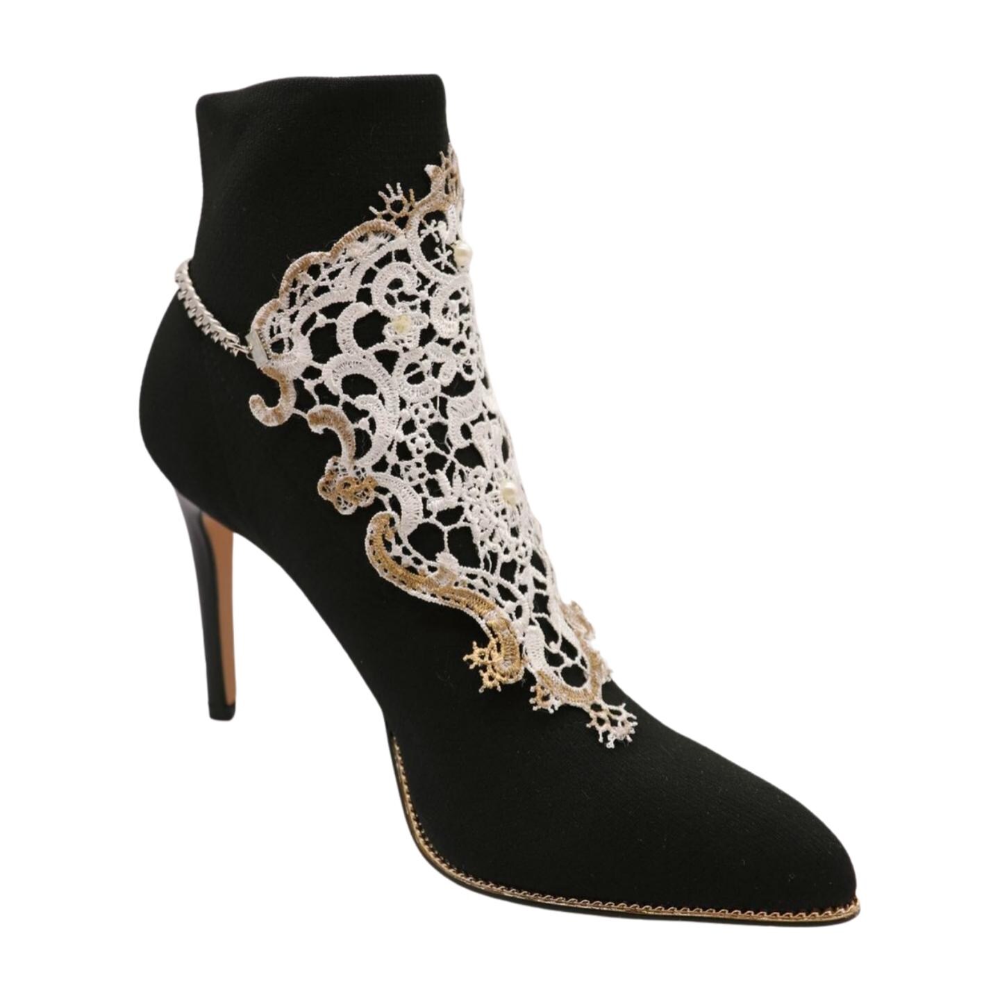 This White Lace and Pearl Boot Chain Bracelet is a must-have for those looking to add a unique, chic accessory to their footwear collection.