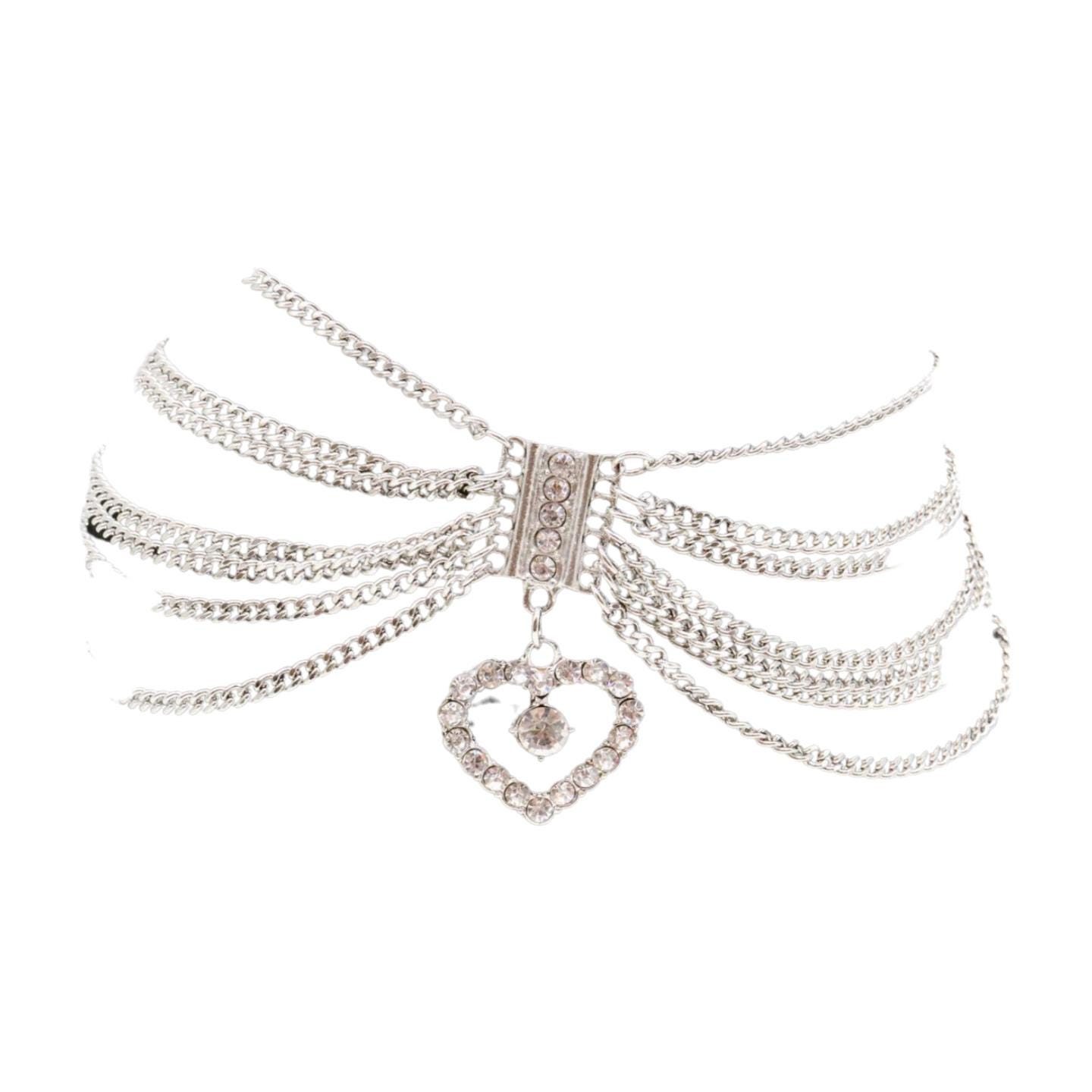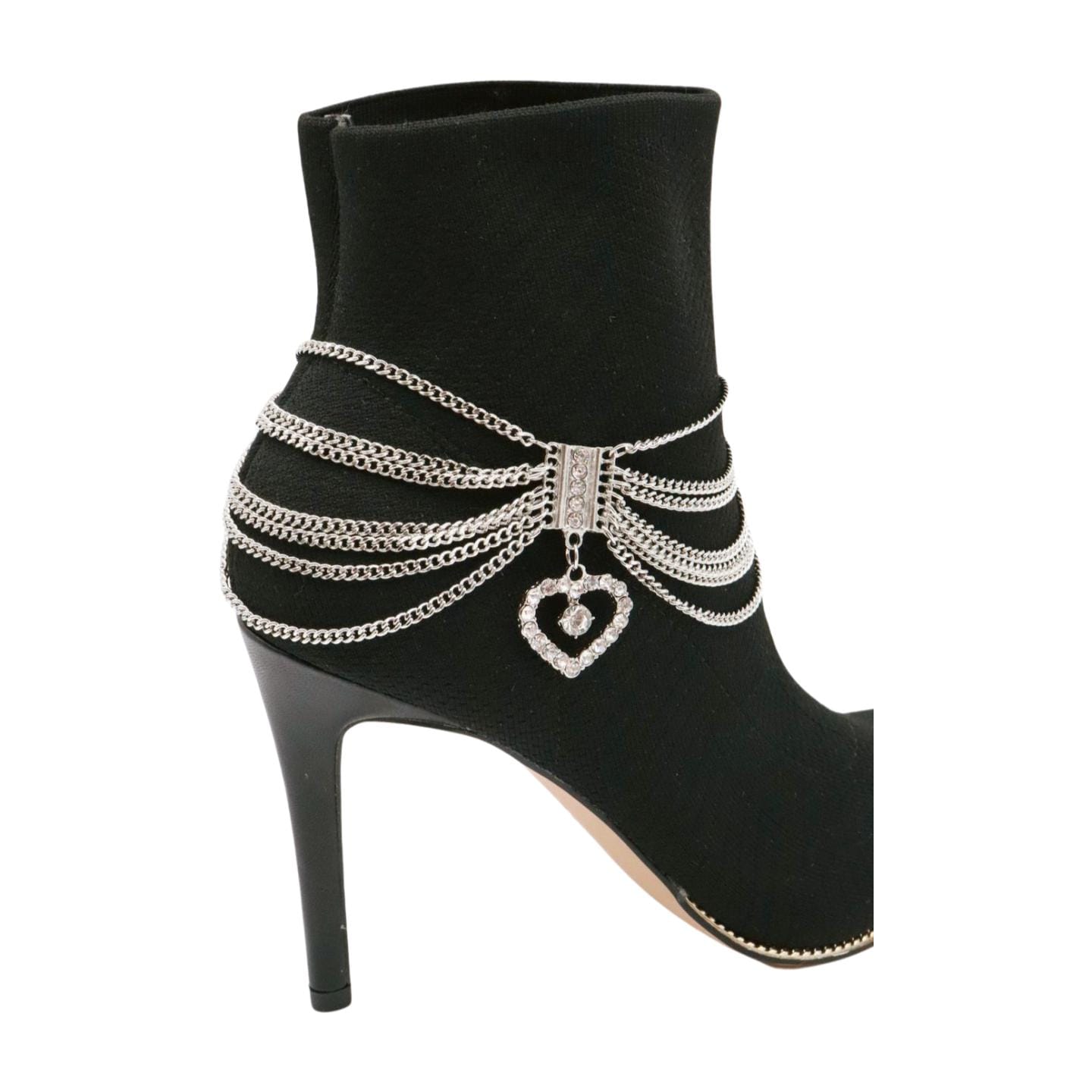 Each bracelet features layered silver-tone chains that drape elegantly across your ankle or boot shaft, creating movement and sparkle with every step. And the center of attention? A dangling heart charm, decked out in rhinestones for maximum "look-at-me" vibes.