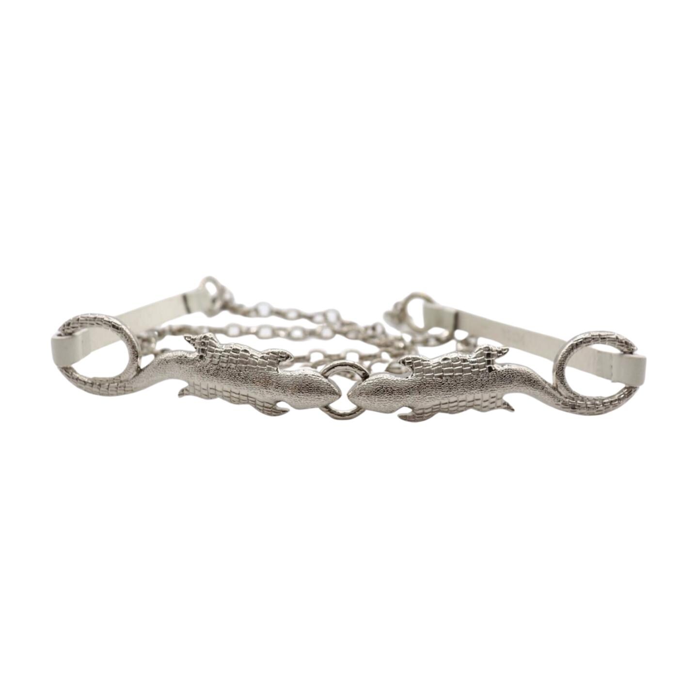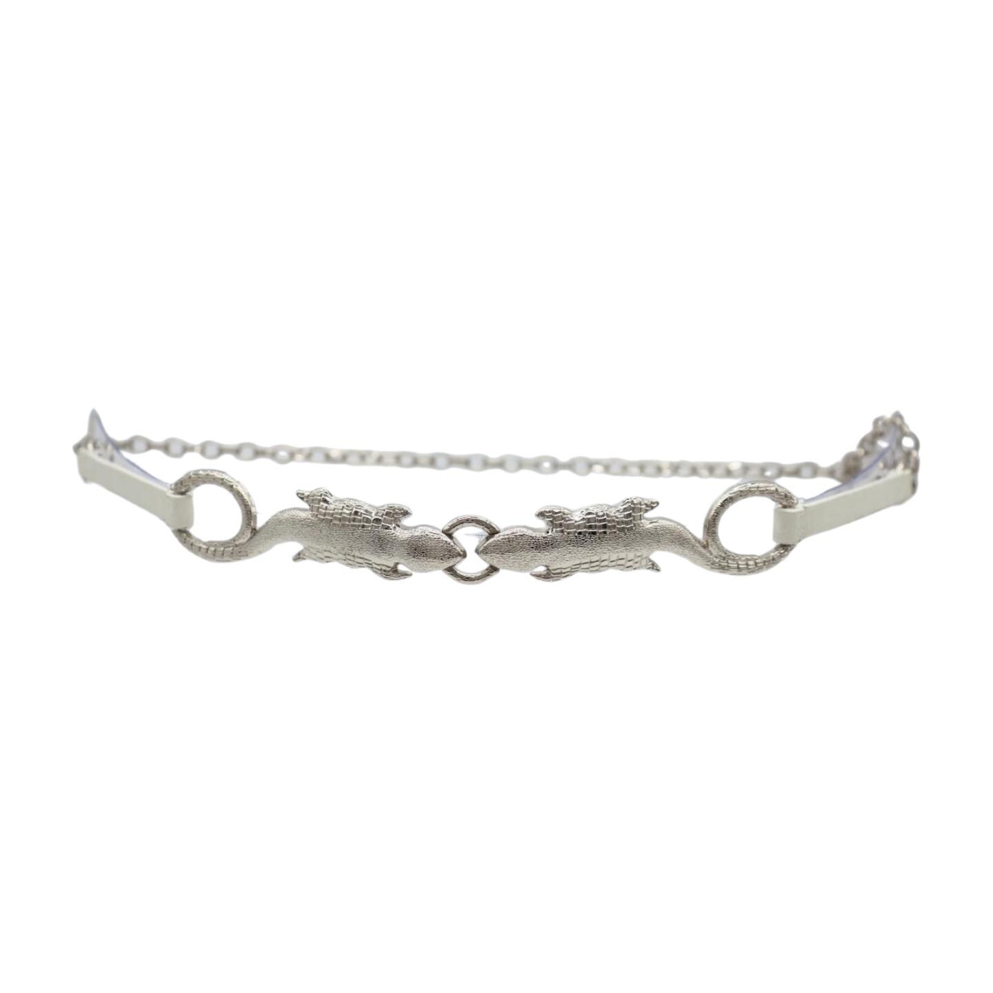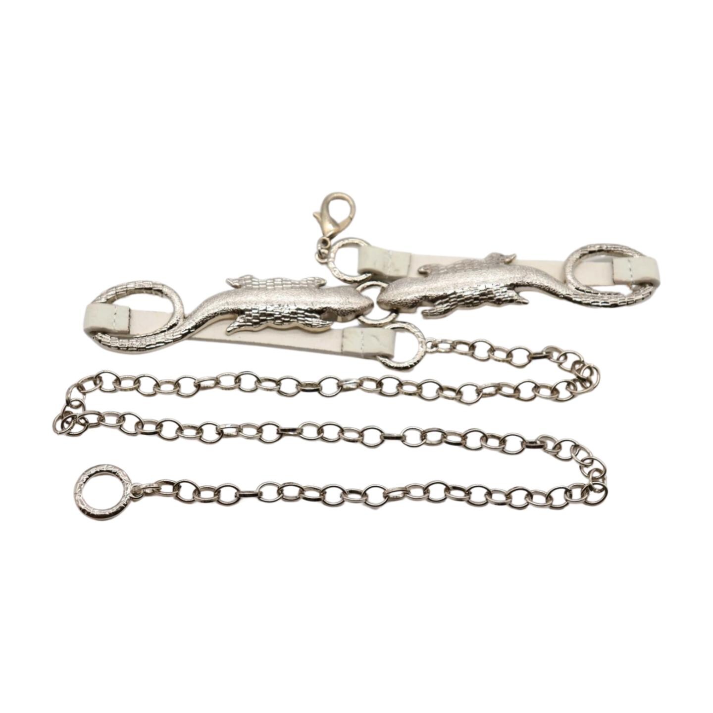 White Faux Leather Belt: Silver Lizard Chain, Adjustable Safari Style