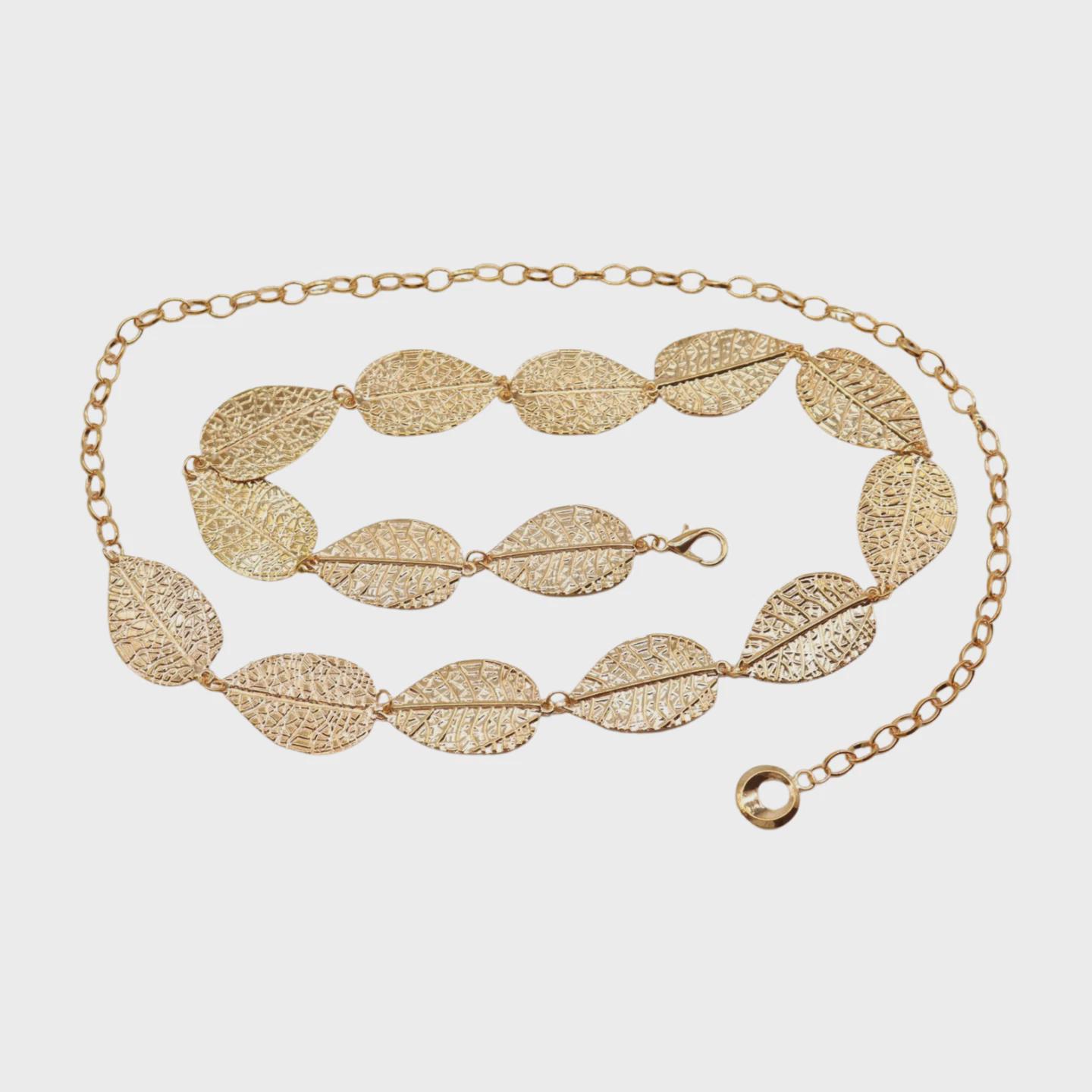 Gold Leaf Chain Belt: Elegant Metal Waistband, Adjustable (27"-43")