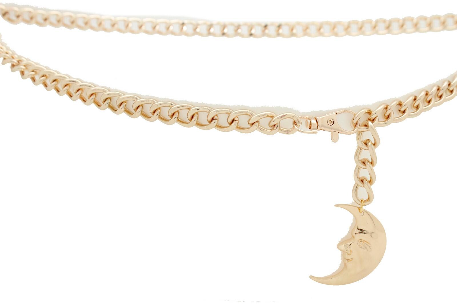 Women's Gold Chain Link Waist Belt with Moon Charm – Adjustable Skinny Fashion Statement Belt for High Waist, Dresses, Pants – Trendy Urban Style XS XXL