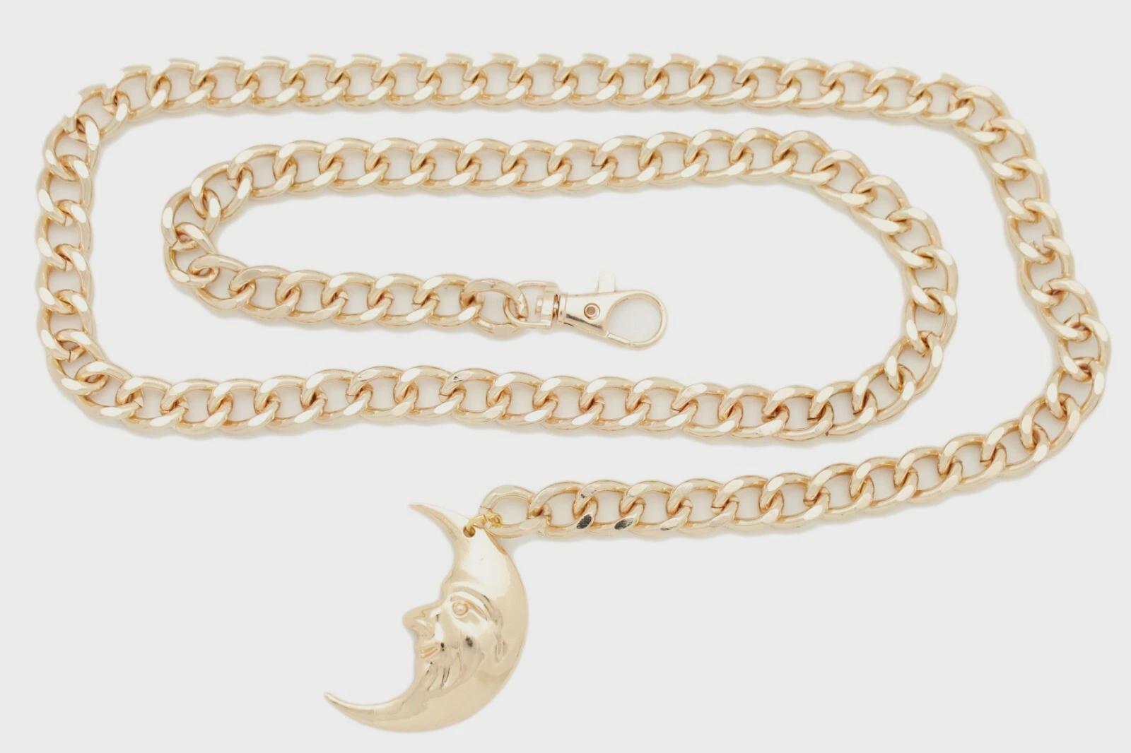 🛒 Add this gold chain belt with moon charm to your cart today and elevate your fashion game—moonlit style never goes out of trend!