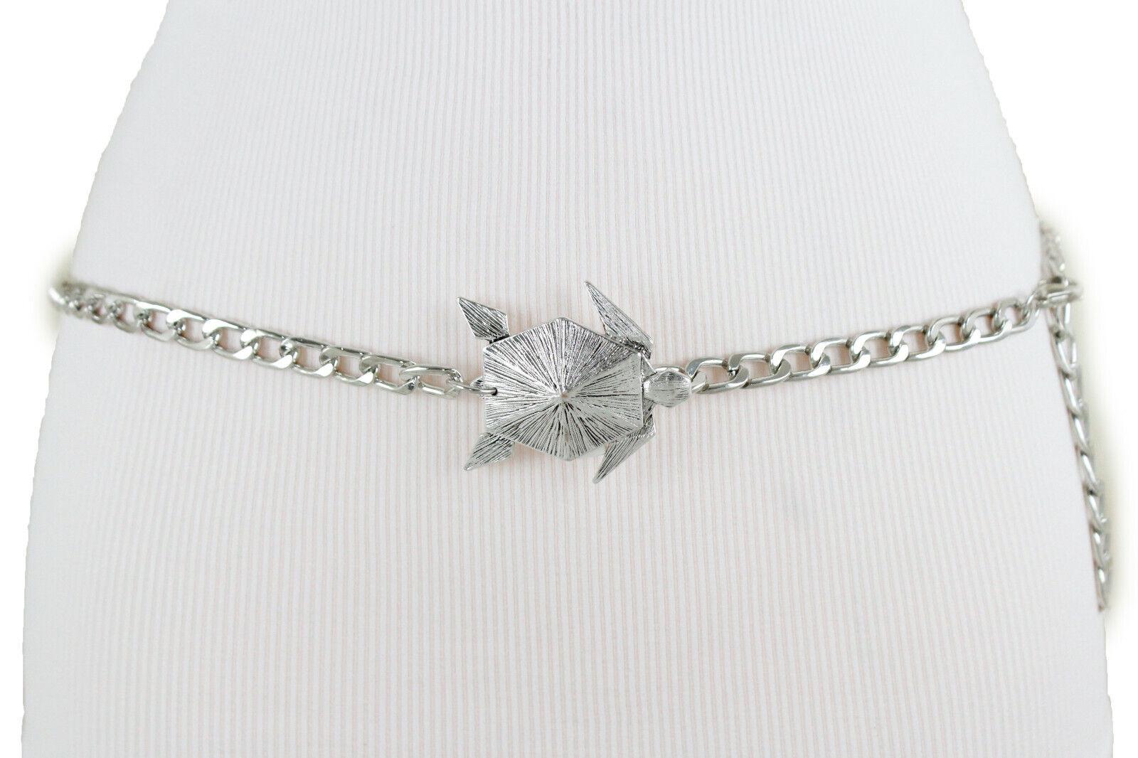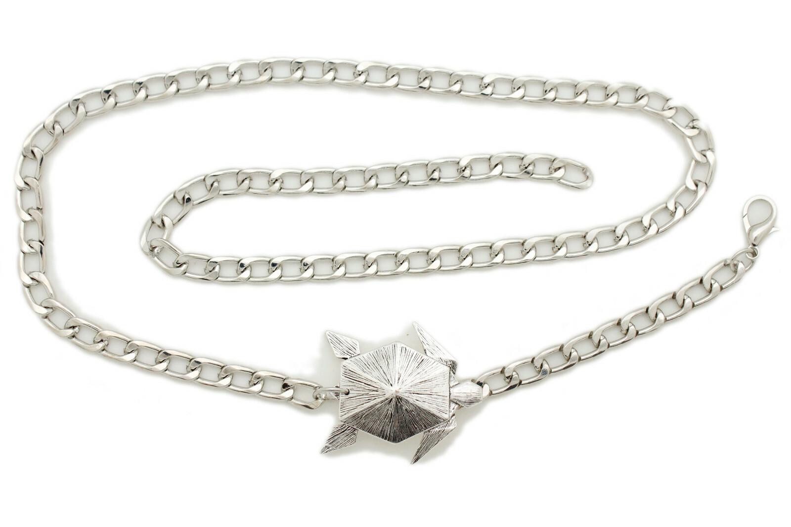 Color: Silver metal chain links waistband + turtle charm