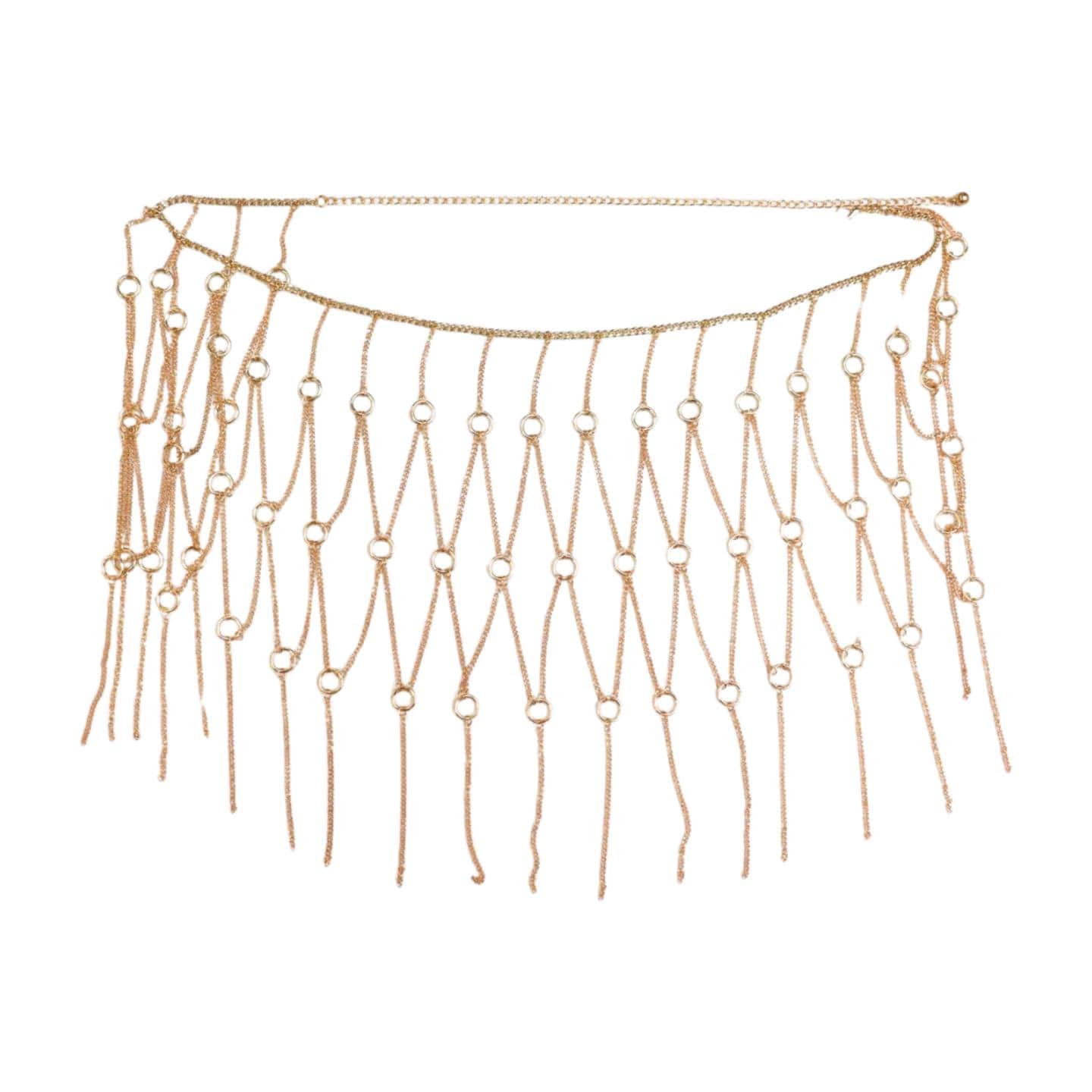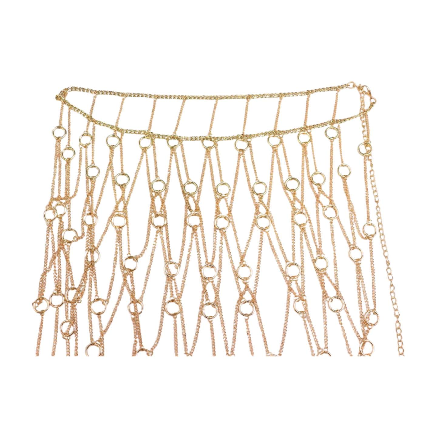 Women’s Gold Metal Chain Skirt Belt – Sexy Festival Gold Circle Ring Tassel Waistband – Adjustable Size S/M