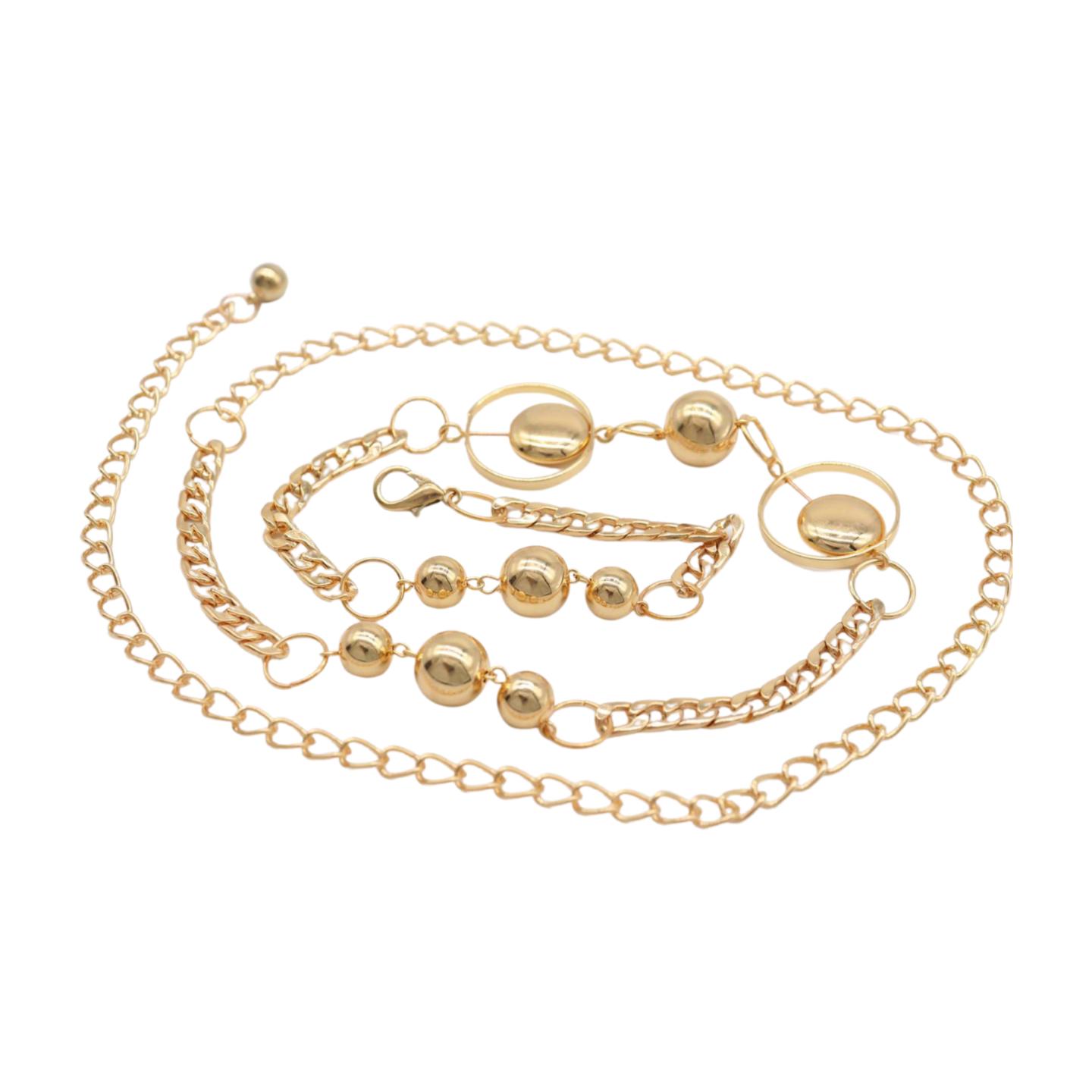 π Statement Circle Charms β Features alternating open gold circles and smooth gold beads in varying sizes, creating a flattering curve-enhancing look that catches light and attention.