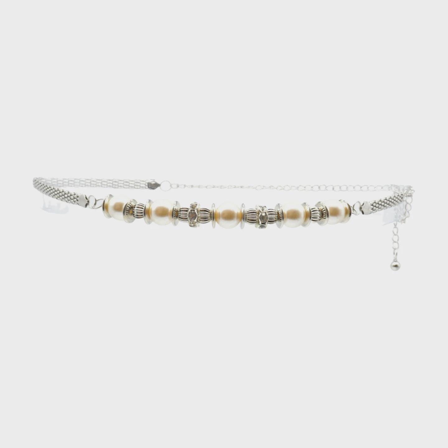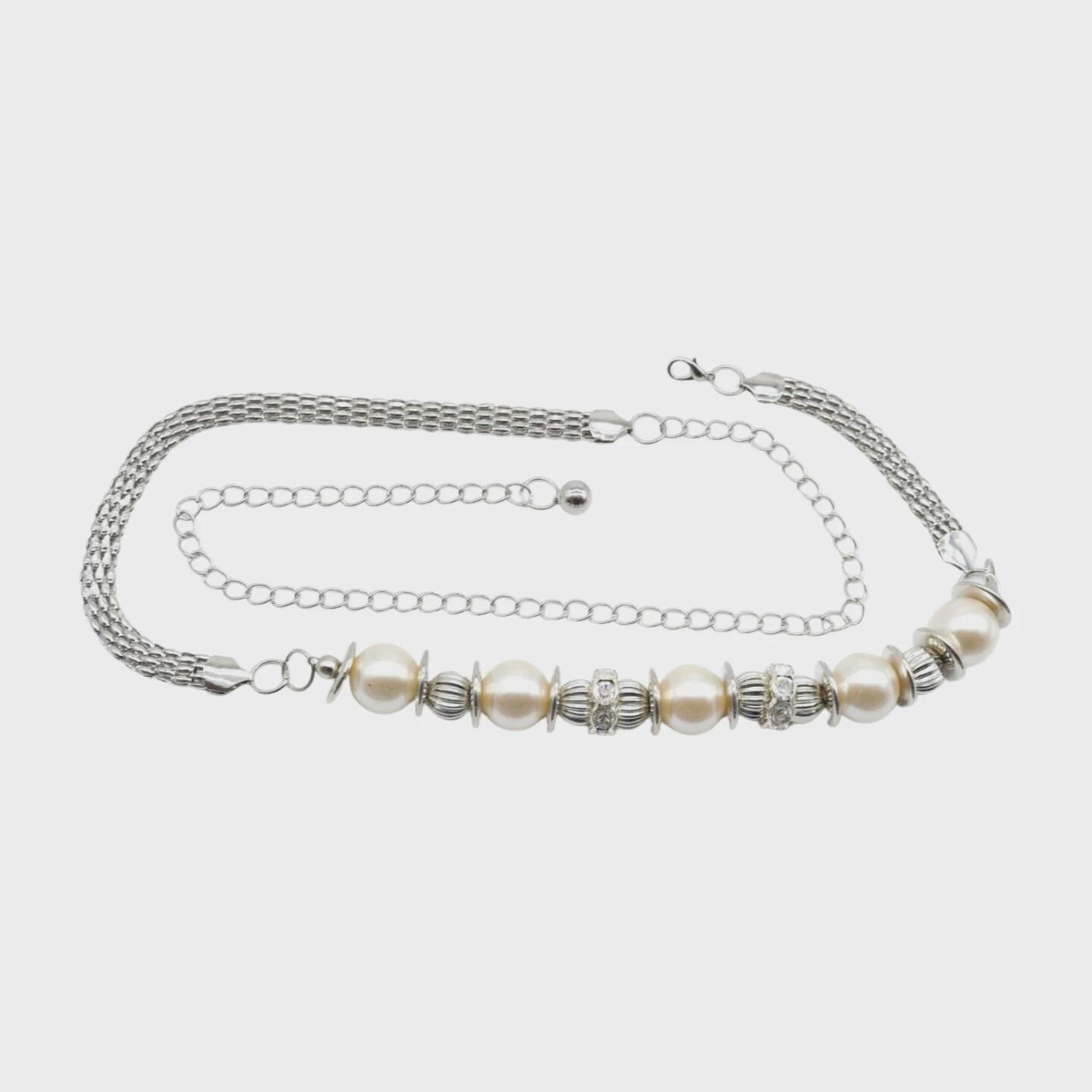 Silver Chain Belt with Imitation Pearl Beads - Adjustable Fit