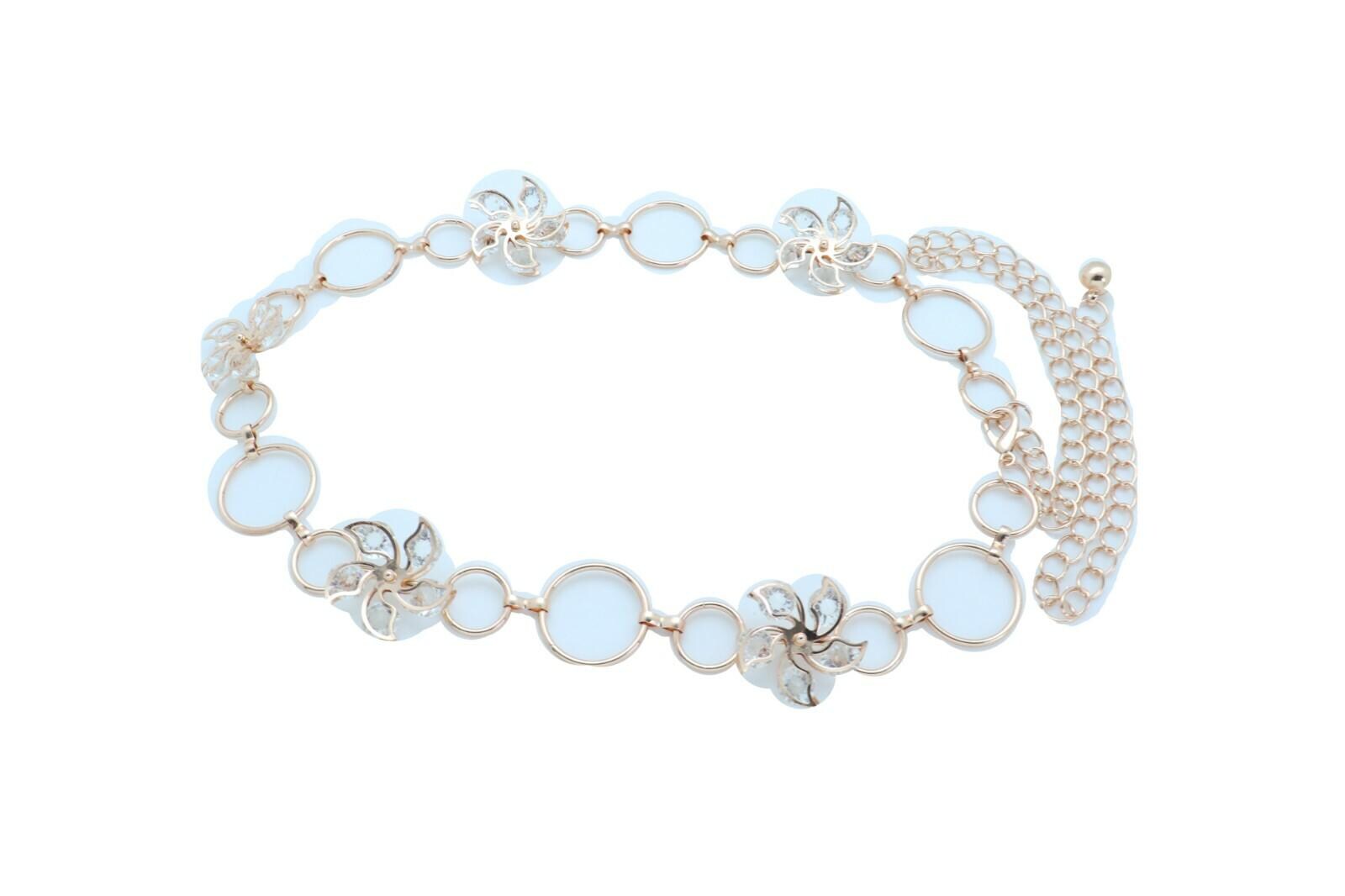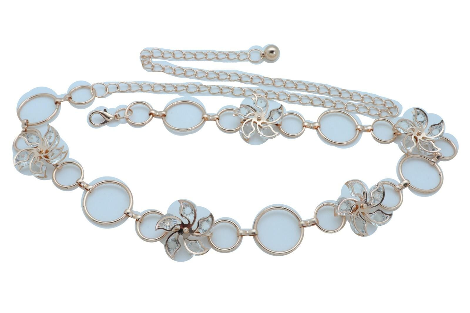 Crafted with high-quality gold metal chain links and 1 3/8” wide waistband, it features standout flower charm designs enhanced with silver clear rhinestones for a bling-inspired vibe. Designed to fit waist sizes from 25" to 43", it’s ideal for Small to Large sizes and offers a flattering, comfortable fit thanks to its adjustable lobster clasp and extender chain.