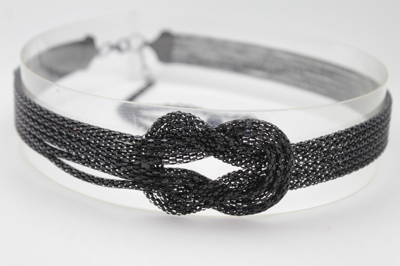 black chain belt, women’s braided metal belt, trendy waist belt, fashion infinity belt, modern dress belt, ladies black belt, chain knot belt, stylish waist accessory, business casual belt, adjustable metal belt, trendy belt for dress, office fashion belt, dress up outfit belt, evening belt, gift for her fashion
